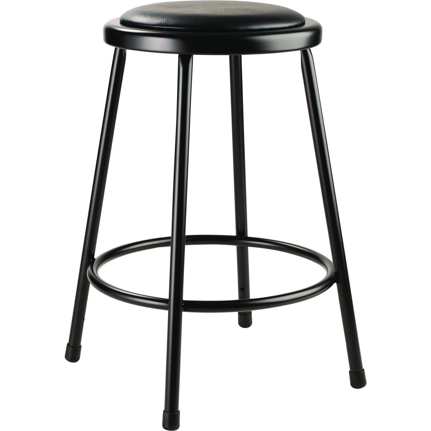 The fortified construction and soft comfort of the 6400 Series heavy-duty padded stools are ideal for hands-on educational settings like art rooms, science labs, home economics or shop classrooms. This reliable stool features a strong frame of 18-gauge steel tubing securely welded to a 14 inch diameter seat pan. Recommended Application Area(s): Classroom & Training; General Office & Task; Healthcare; Seat Color: Black; Color Family: Black; Arms Included: No.