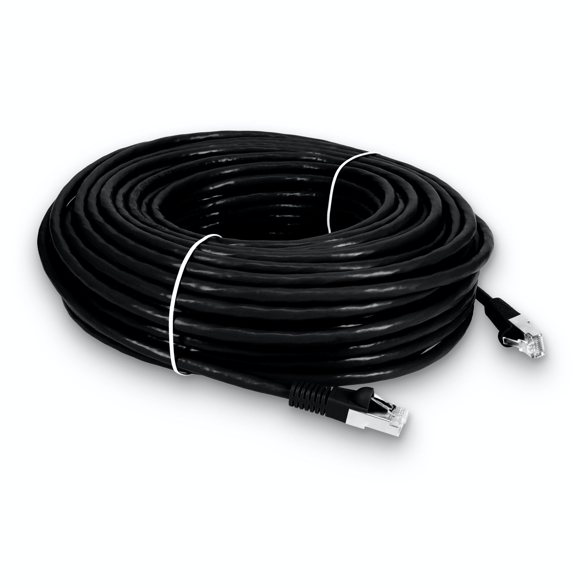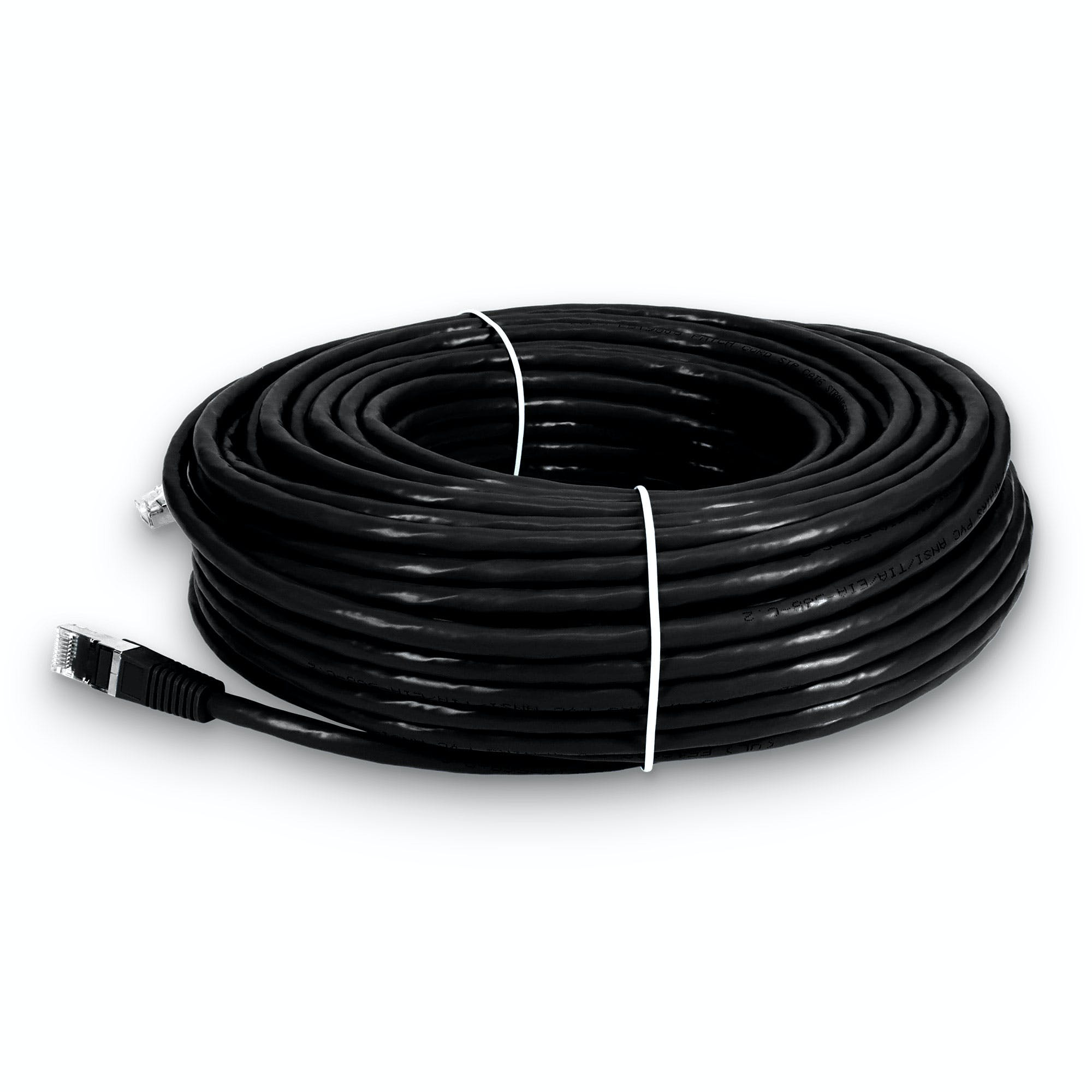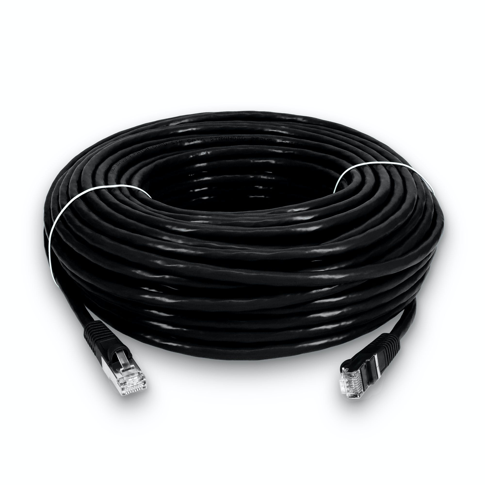 This is a 100ft RJ-45 (male) to RJ-45 (male) black Cat6 STP PVC-rated patch straight cable that is used for high speed data transfer. This patch cable is Trade Agreements Act (TAA) compliant. Our patch cables are 100% compliant for all of your networking needs and are guaranteed by federal law to not affect or void OEM warranties.