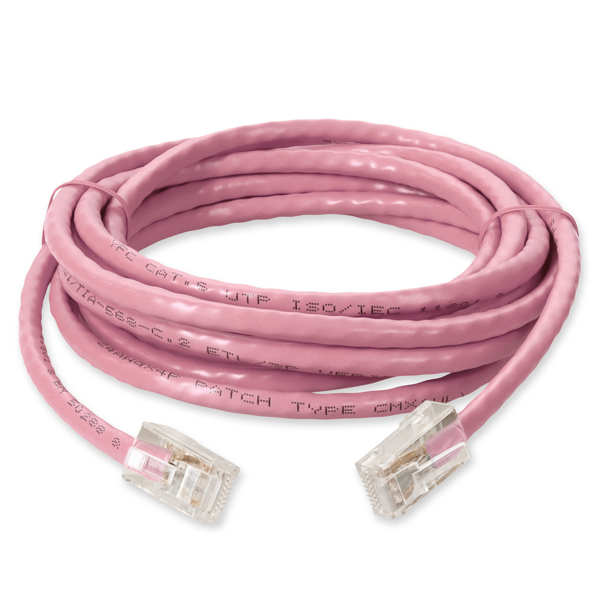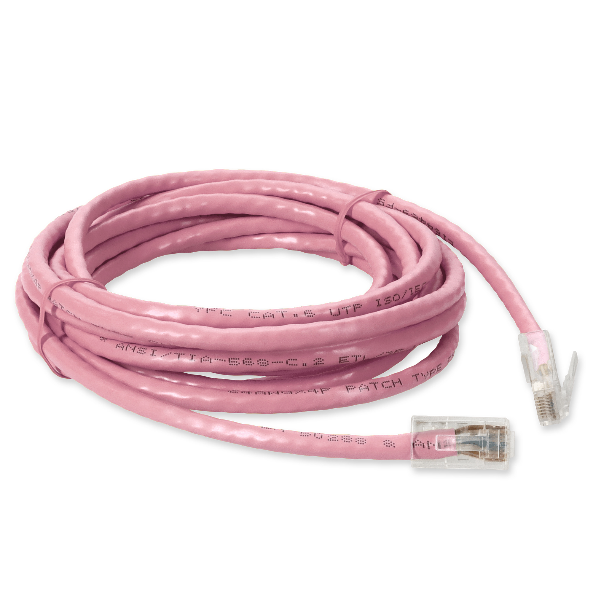 This is a 1ft RJ-45 (male) to RJ-45 (male) pink unshielded twisted pair PVC copper patch cable. The Cat6 cable is a standardized twisted pair cable for Ethernet or other physical network layers. Cat6 standards specify performance of up to 250MHz. This PVC jacketed cable is best suited for LANs or SANs, and is recommended for connection between fiber patch panels, hubs, switches, media converters and routers. Unshielded twisted pair patch cables are perfect for data centers, LANs and other short range network connections. Our patch cables are 100% compliant for all of your networking needs. Our products are guaranteed by federal law to not affect or void OEM warranties.