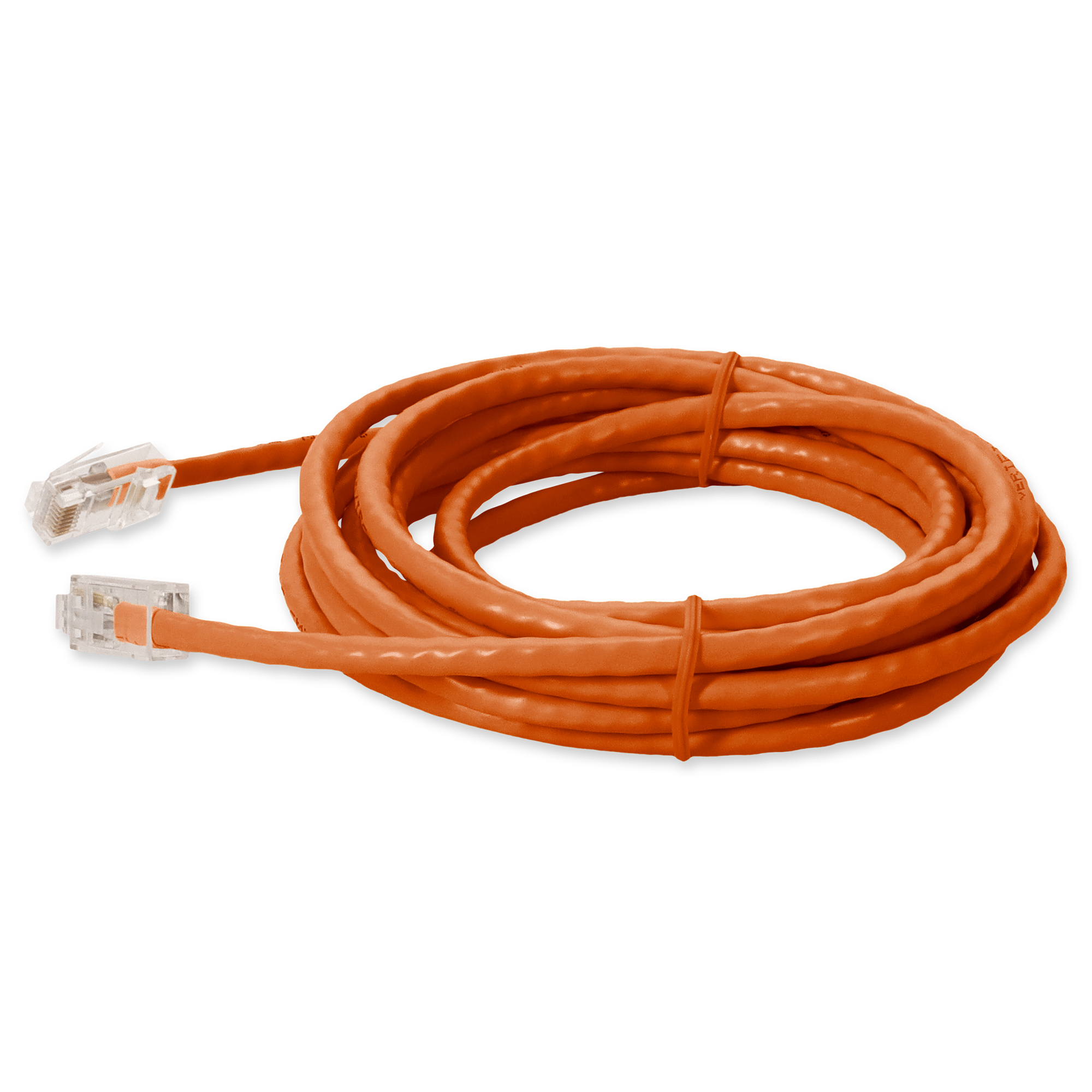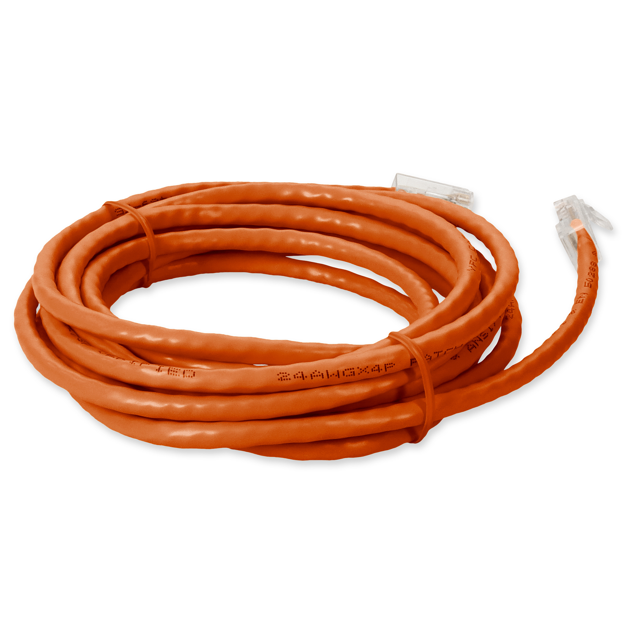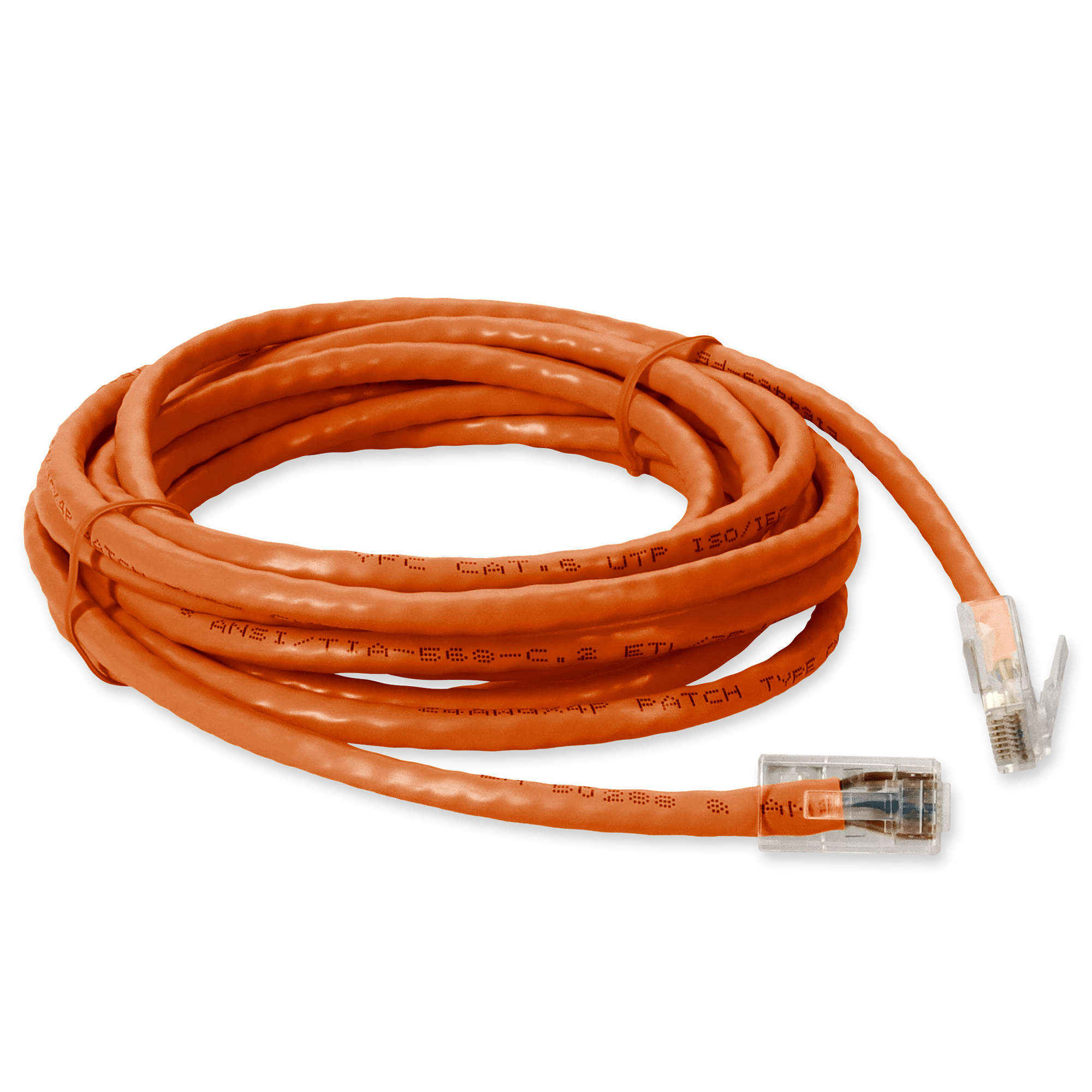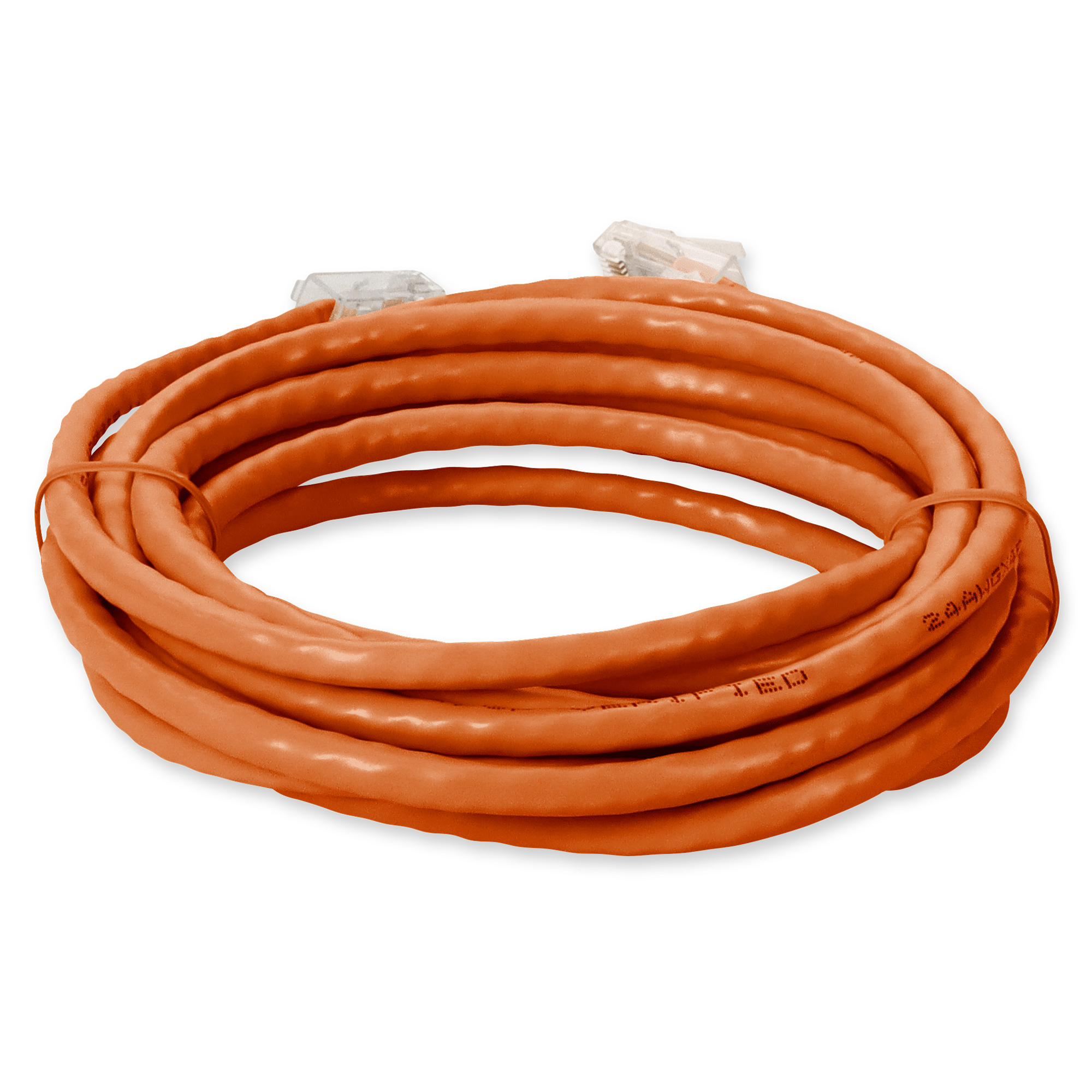 This is a 2ft RJ-45 (male) to RJ-45 (male) orange Non-Booted, Non-Snagless unshielded twisted pair PVC copper patch cable. The Cat6 cable is a standardized twisted pair cable for Ethernet or other physical network layers. Cat6 standards specify performance of up to 250MHz. This PVC jacketed cable is best suited for LANs or SANs, and is recommended for connection between fiber patch panels, hubs, switches, media converters and routers. Unshielded twisted pair patch cables are perfect for data centers, LANs and other short range network connections. Our patch cables are 100% compliant for all of your networking needs. Our products are guaranteed by federal law to not affect or void OEM warranties.