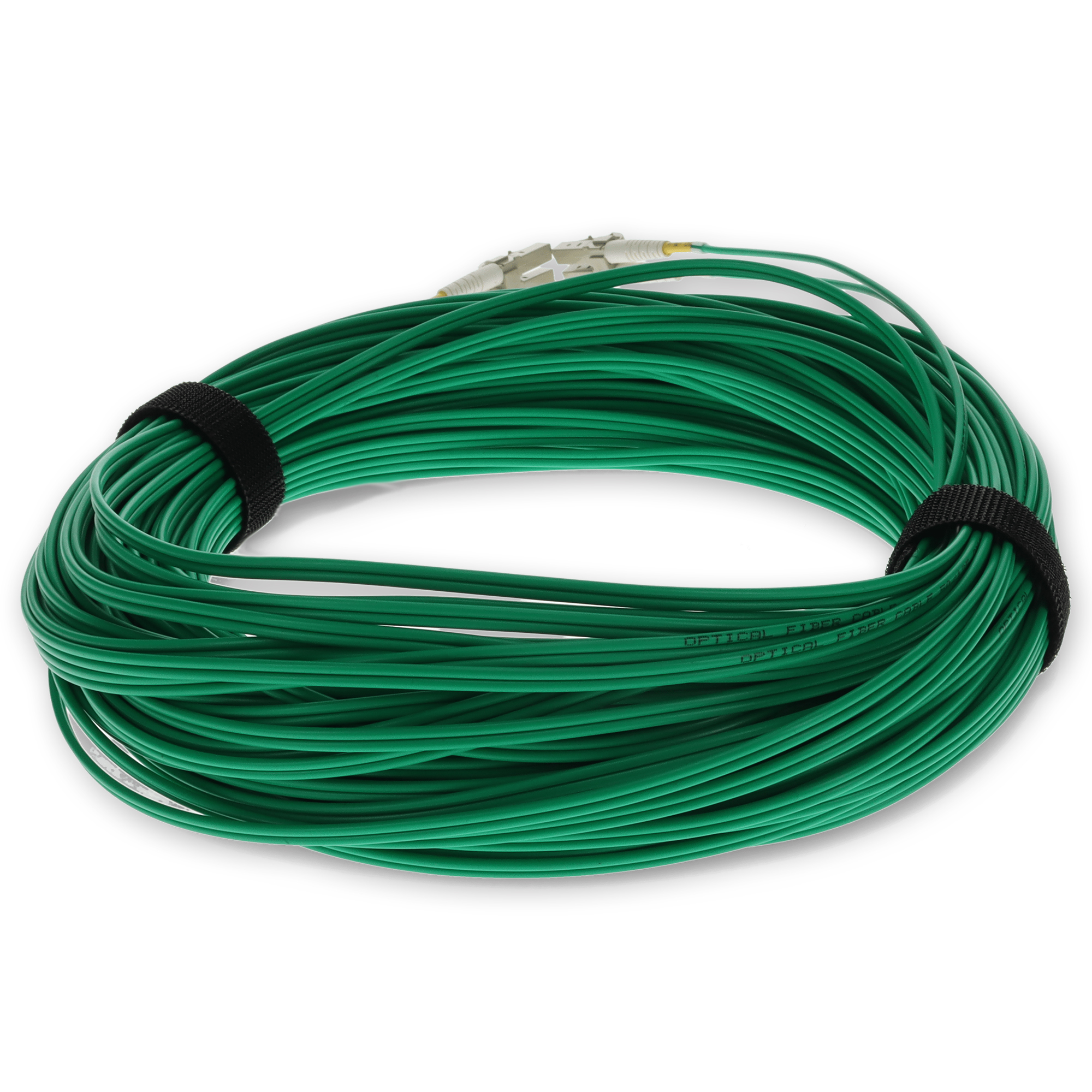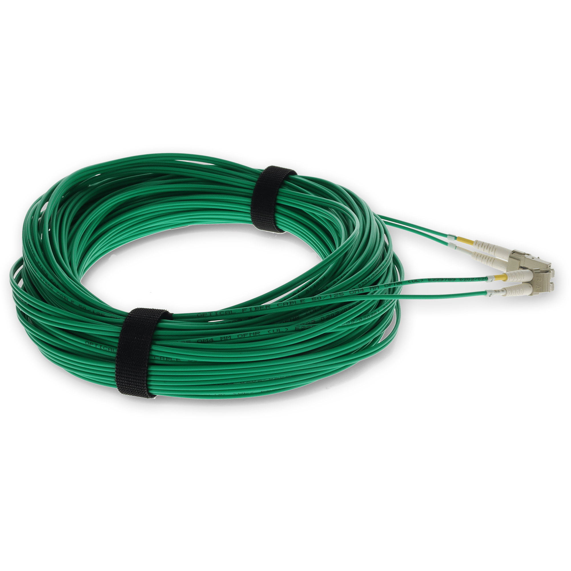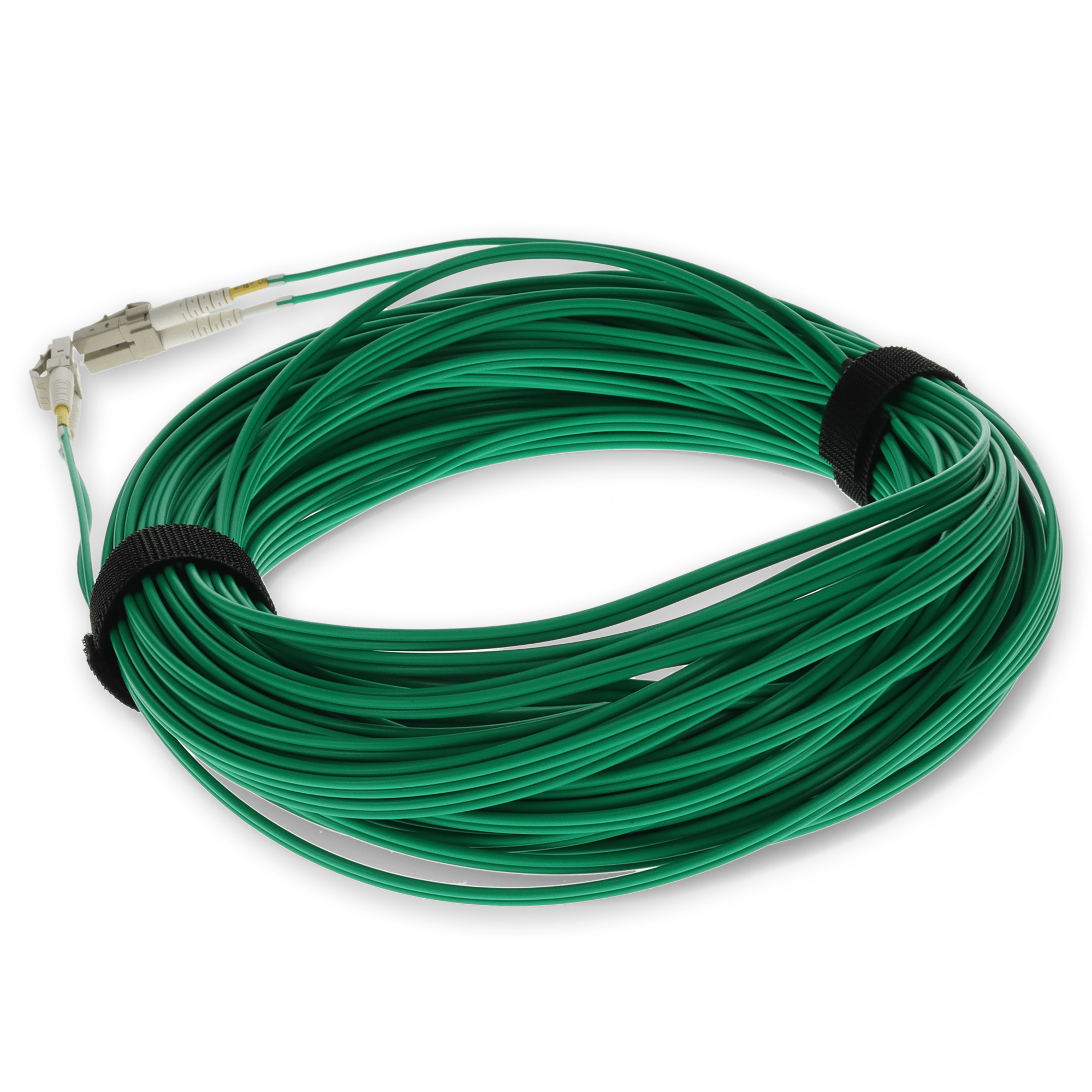 This is a 15m LC (male) to LC (male) green duplex riser-rated fiber patch cable. An OM4 cable has a core size of 50m microns that supports 10 Gigabit Ethernet at lengths measuring up to 550 meters, and 100 Gigabit Ethernet measuring up to 150 meters and is reverse compatible with OM3. This optical fiber, nonconductive, riser (OFNR) cable is best suited for use in interior fiber-optic applications. A duplex cable is a two-strand fiber optic patch cable that works best with transceivers that both transmit and receive. Our patch cables are 100% compliant for all of your networking needs. Our products are guaranteed by federal law to not affect or void OEM warranties.