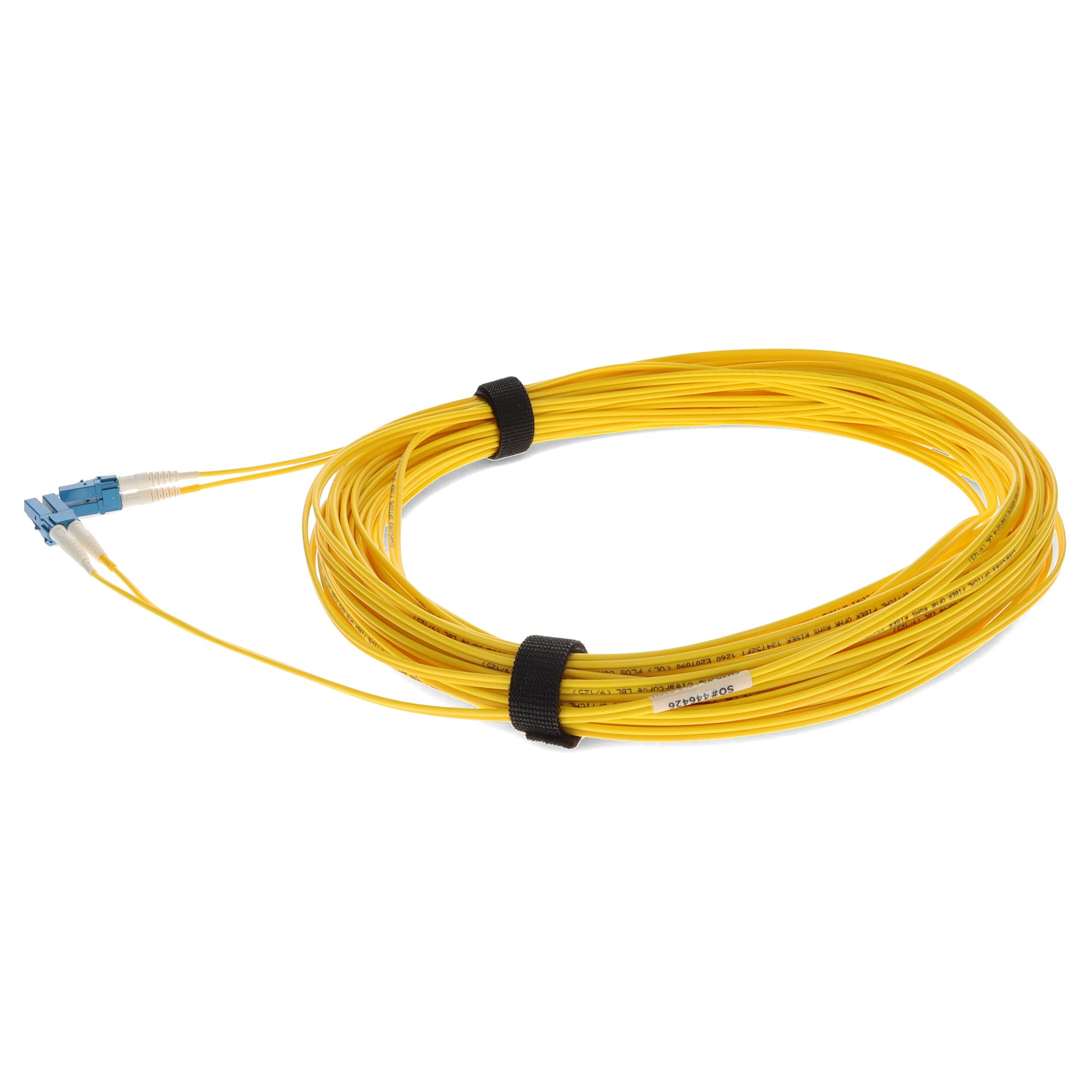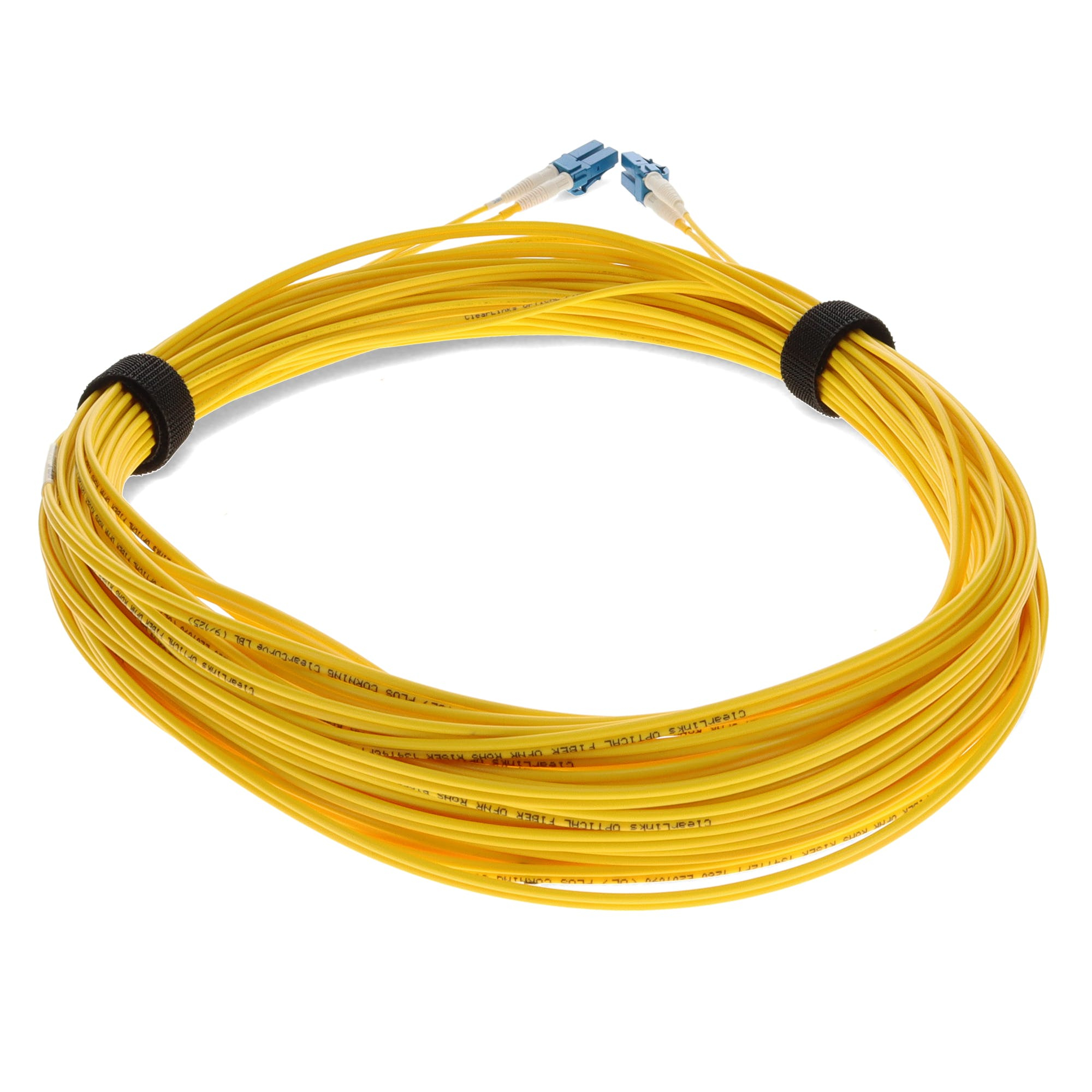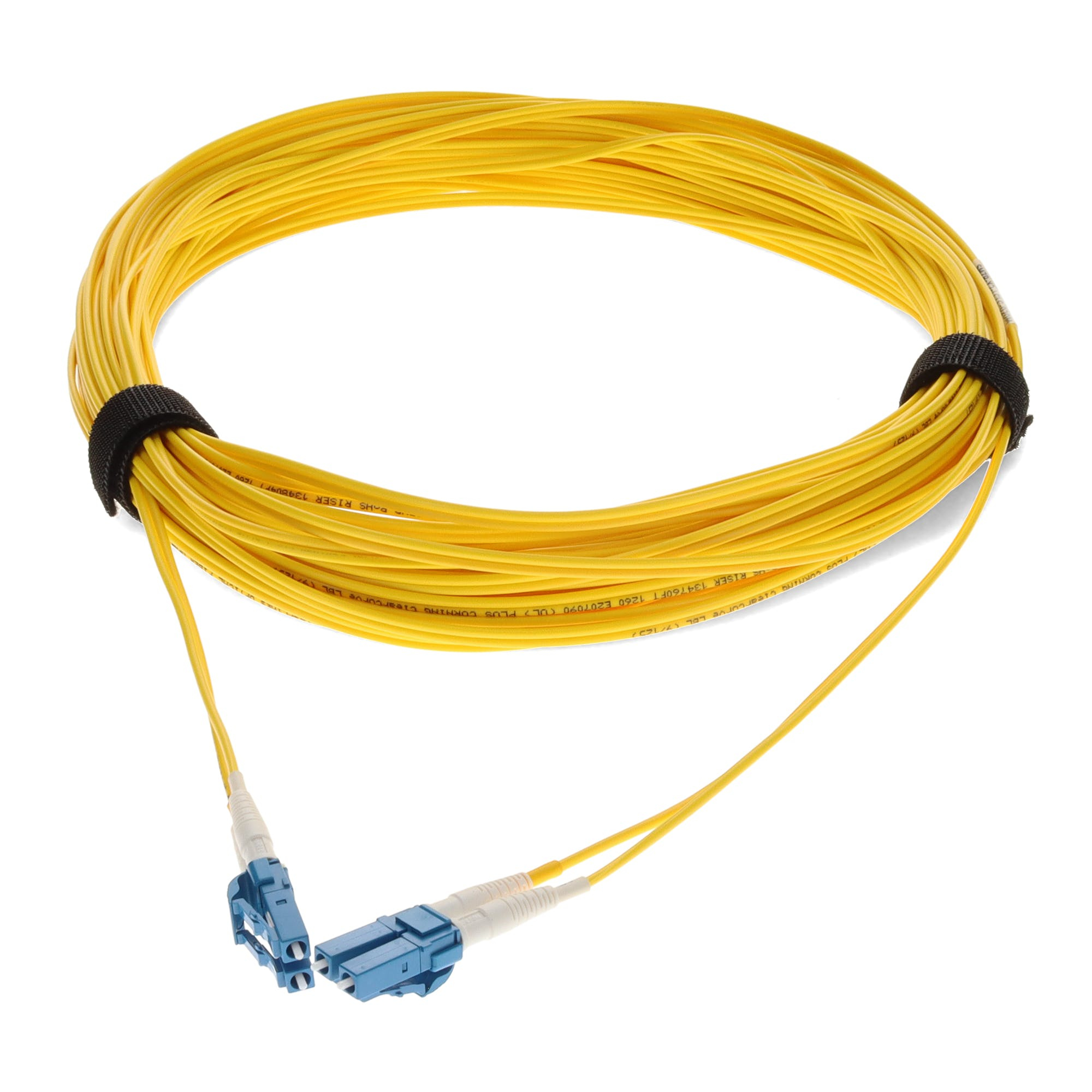 This is a 25.0m (82.0ft) LC (male) to LC (male) yellow OS2 Duplex riser-rated patch straight cable that is used for high speed data transfer. OS2 is a standard single-mode optical fiber commonly used with wavelengths of 1310nm and 1550nm (9/125 microns), and has a maximum attenuation of 1dB/km. The OS2 standard is defined in ISO/IEC 11801. This riser (OFNR) cable is best suited for use in interior fiber-optic applications. Duplex cabling provides two-strands of fiber and is most commonly used in applications that utilize one lane to transmit and one lane to receive. Our patch cables are 100% compliant for all of your networking needs and are guaranteed by federal law to not affect or void OEM warranties.