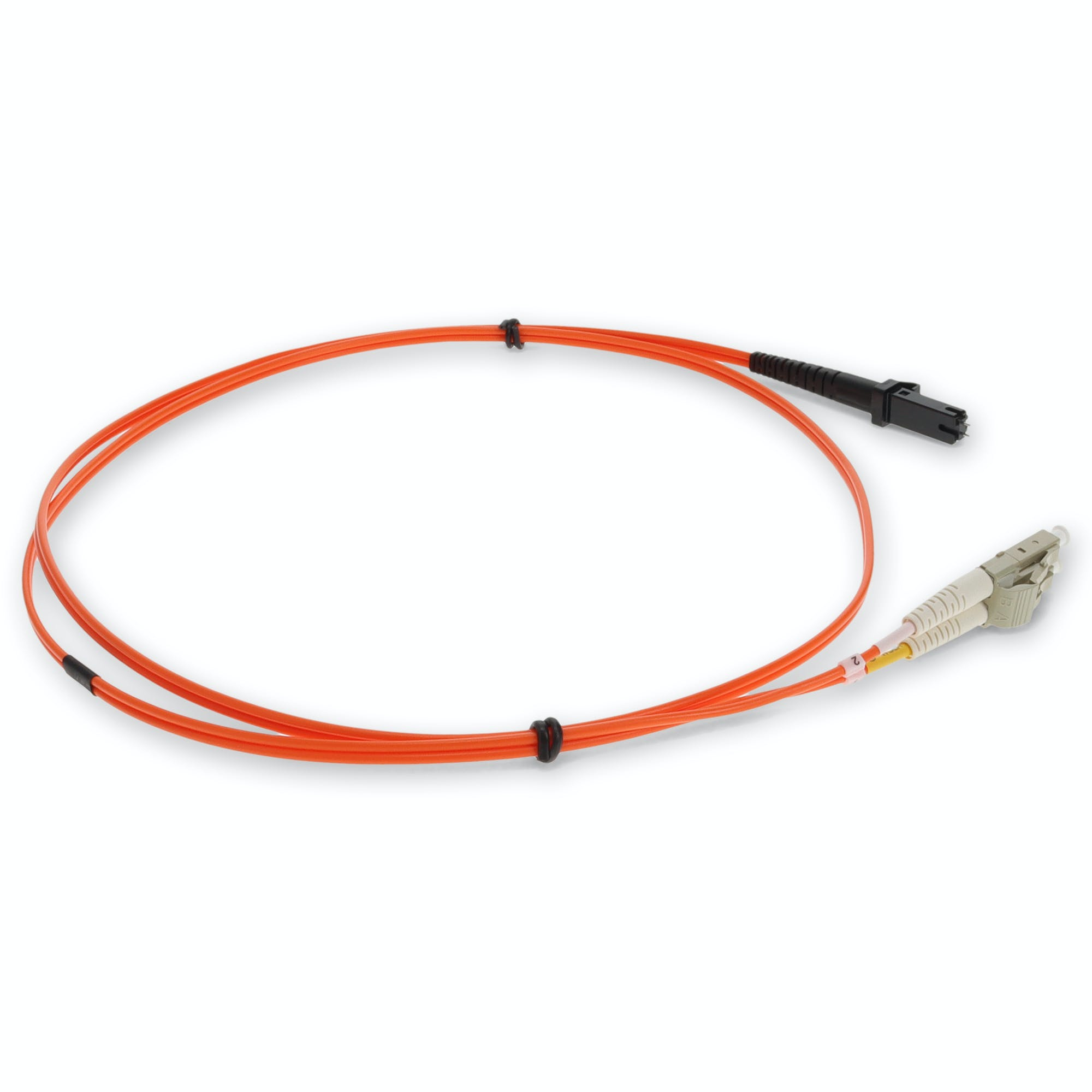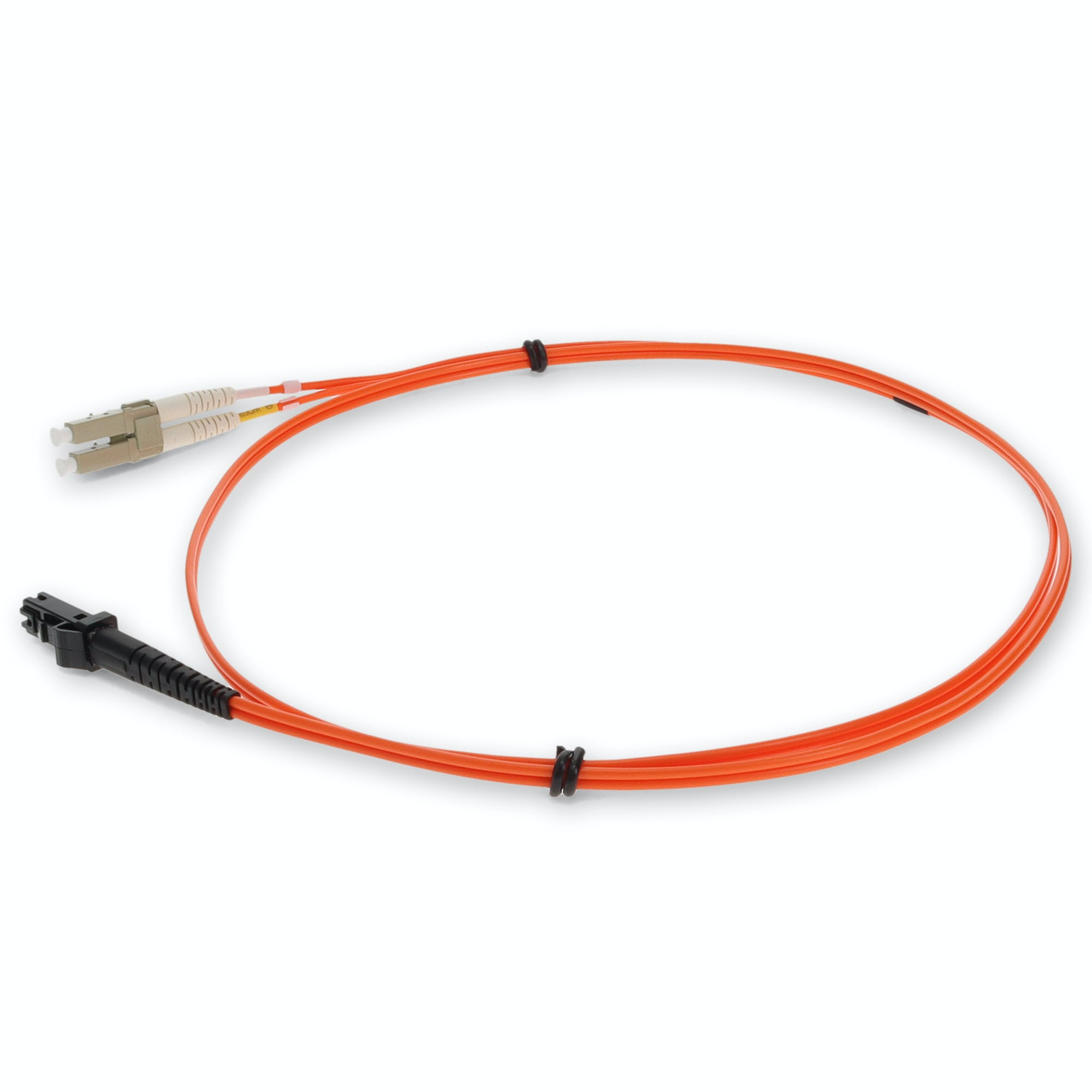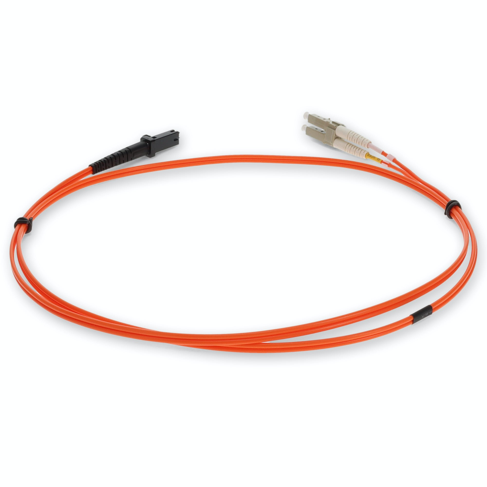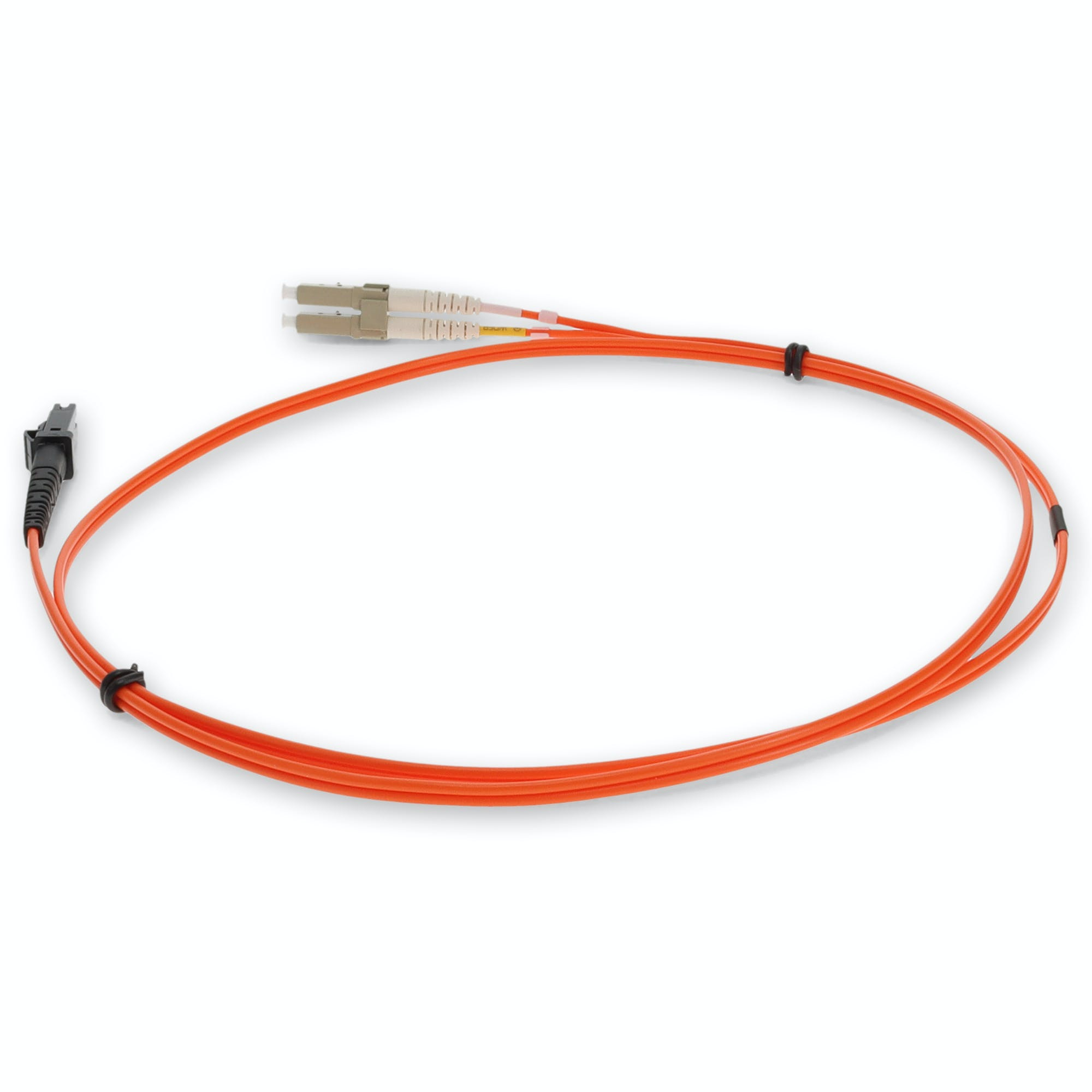 This is a 3m LC (Male) to MTRJ (Male) orange OM1 duplex fiber TAA compliant riser-rated patch cable. An OM1 cable has a core size of 62.5 microns that can support 10 Gigabit Ethernet at lengths measuring up to 33 meters. It is most commonly used for 100 Megabit Ethernet applications. This jacketed cable is best suited for LANs or SANs, and is recommended for connection between fiber patch panels, hubs, switches, media converters and routers. A duplex cable is a two-strand fiber optic patch cable that works best with transceivers that both transmit and receive. Our patch cables are 100% compliant for all of your networking needs. Our products are guaranteed by federal law to not affect or void OEM warranties.