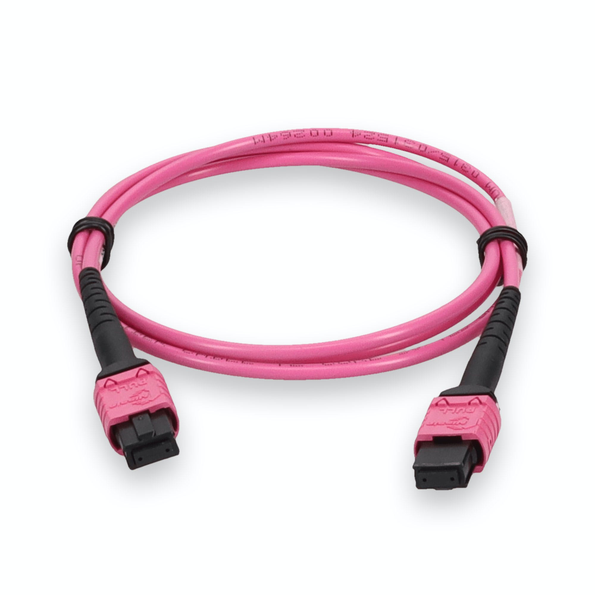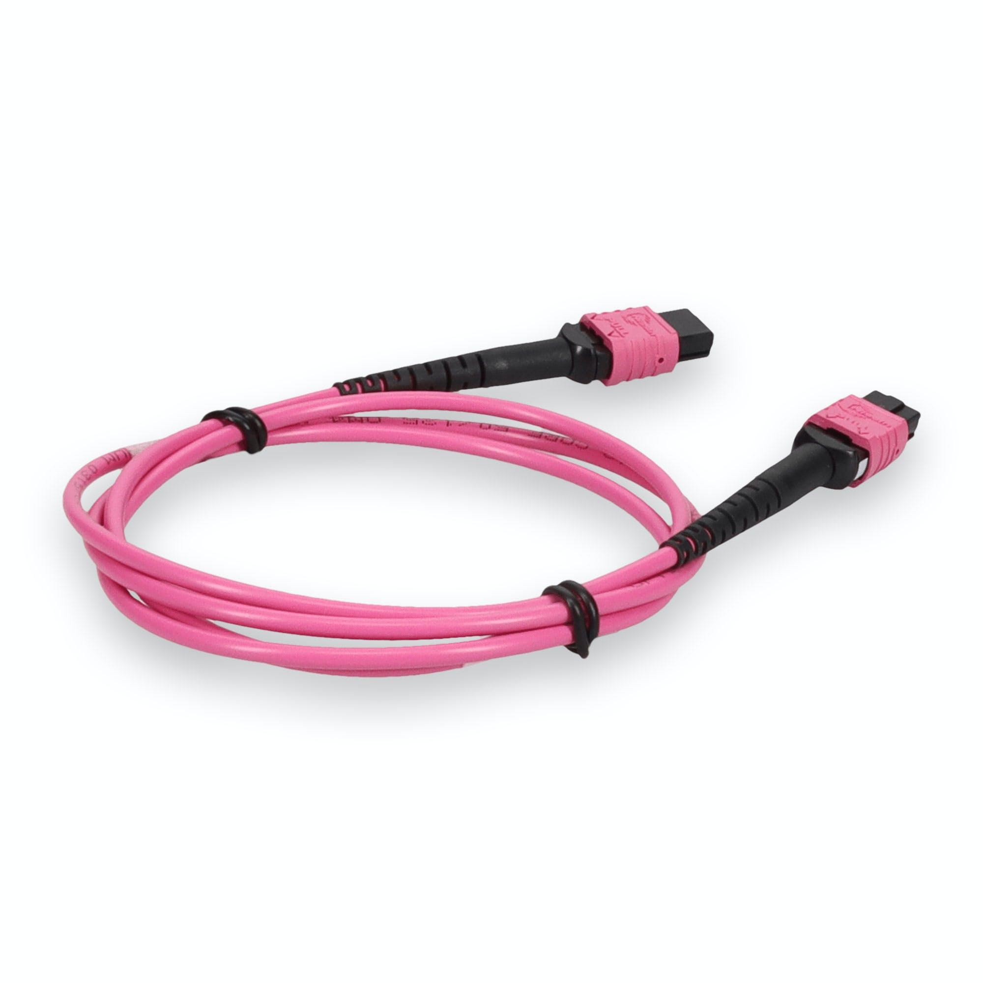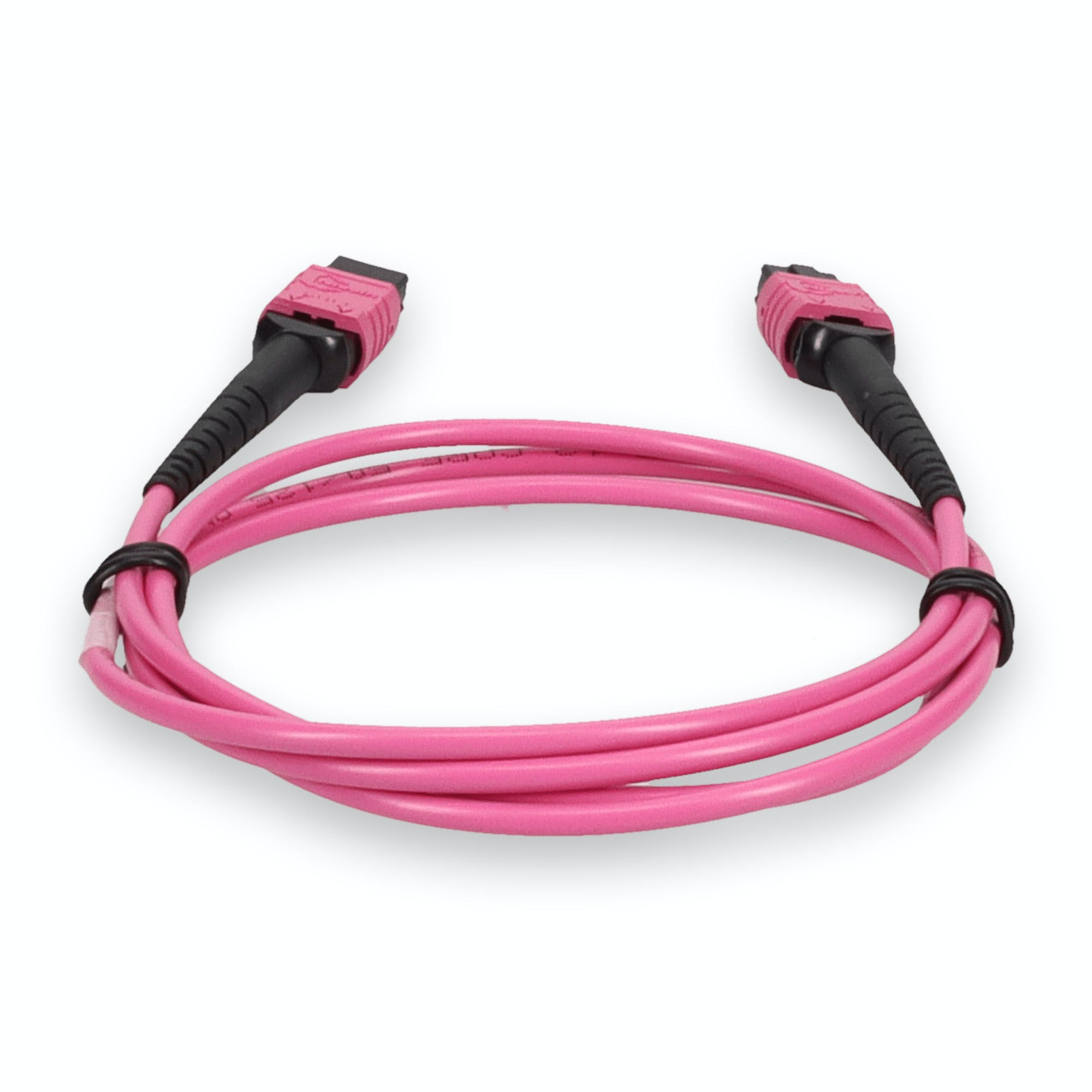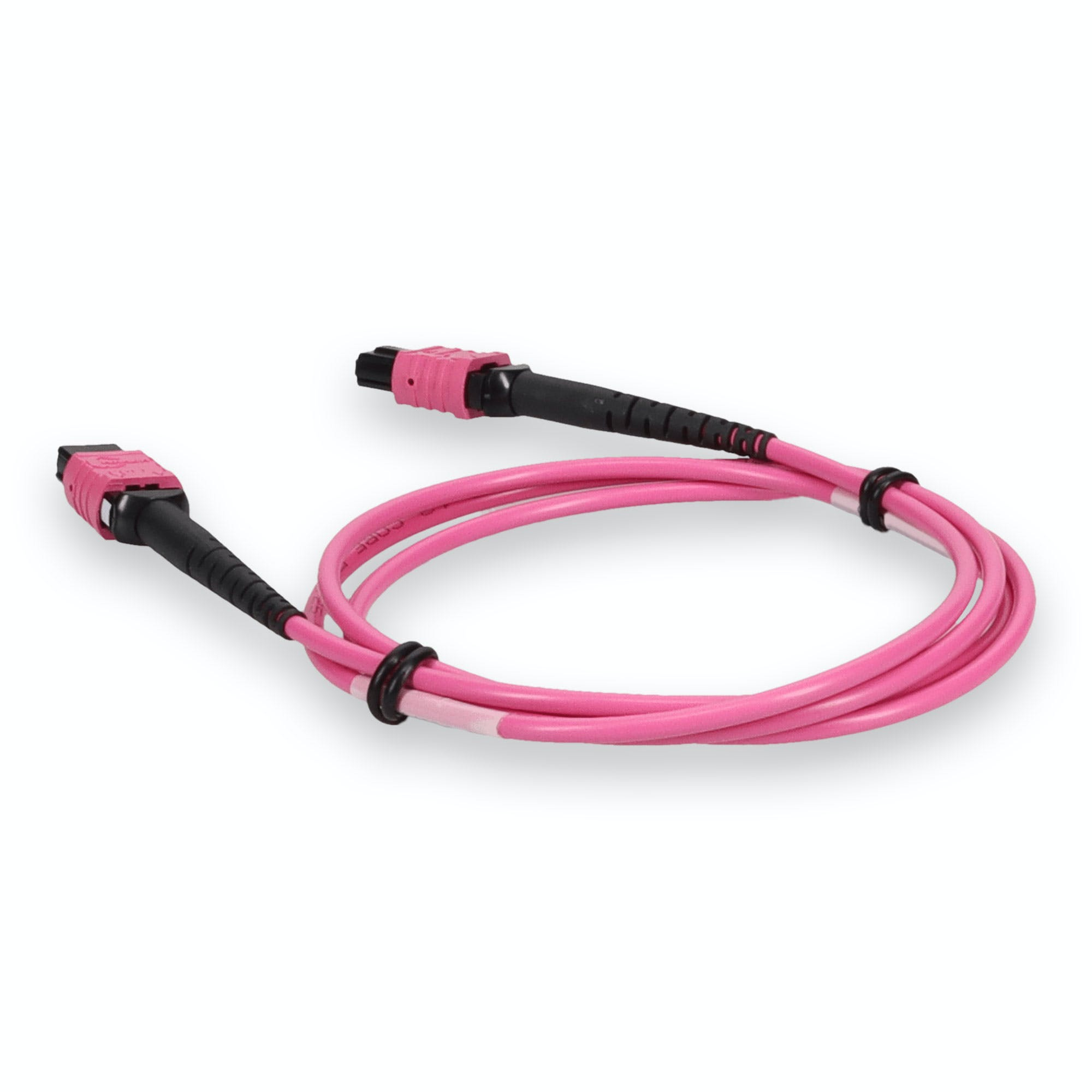 This is a 2m MPO (female) to MPO (female) 12-strand Magenta crossover plenum-rated fiber patch cable. An OM4 cable has a core size of 50m microns that supports 10 Gigabit Ethernet at lengths measuring up to 550 meters, and 100 Gigabit Ethernet measuring up to 150 meters and is reverse compatible with OM3. This optical fiber, nonconductive, plenum (OFNP) cable is best suited for use in interior fiber-optic applications. Our patch cables are 100% compliant for all of your networking needs. Our products are guaranteed by federal law to not affect or void OEM warranties.
