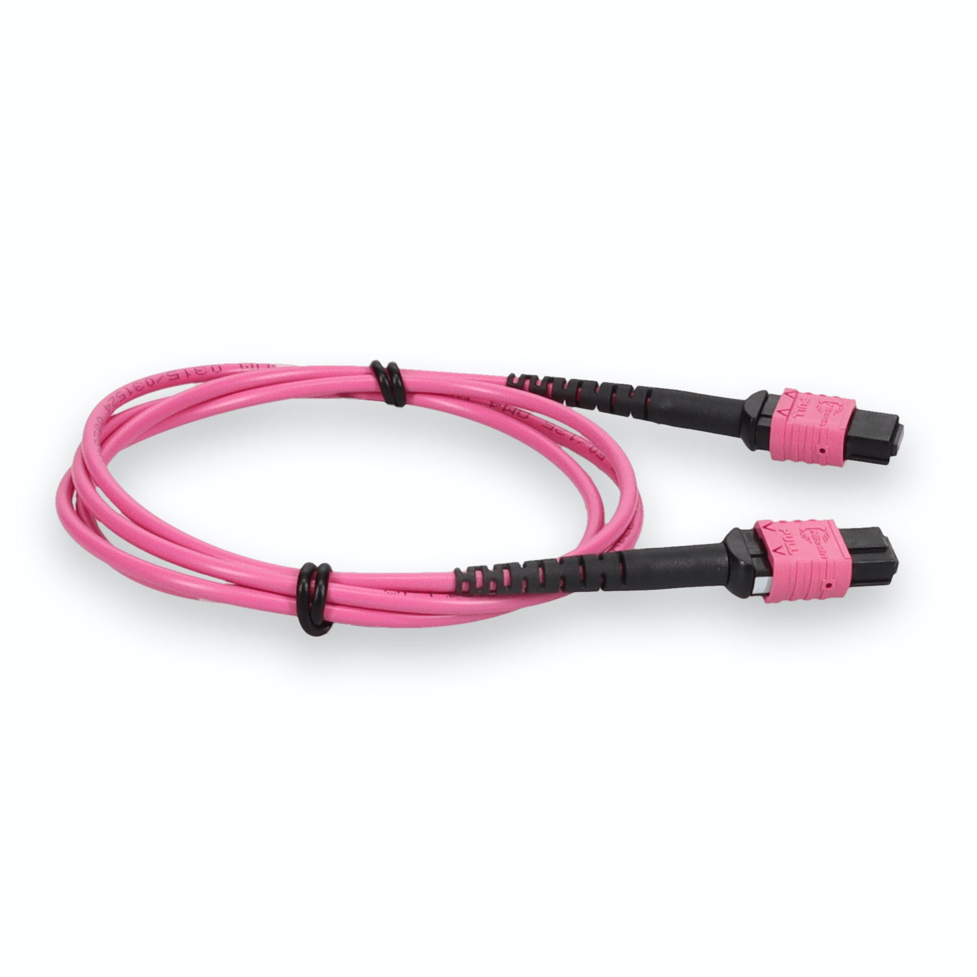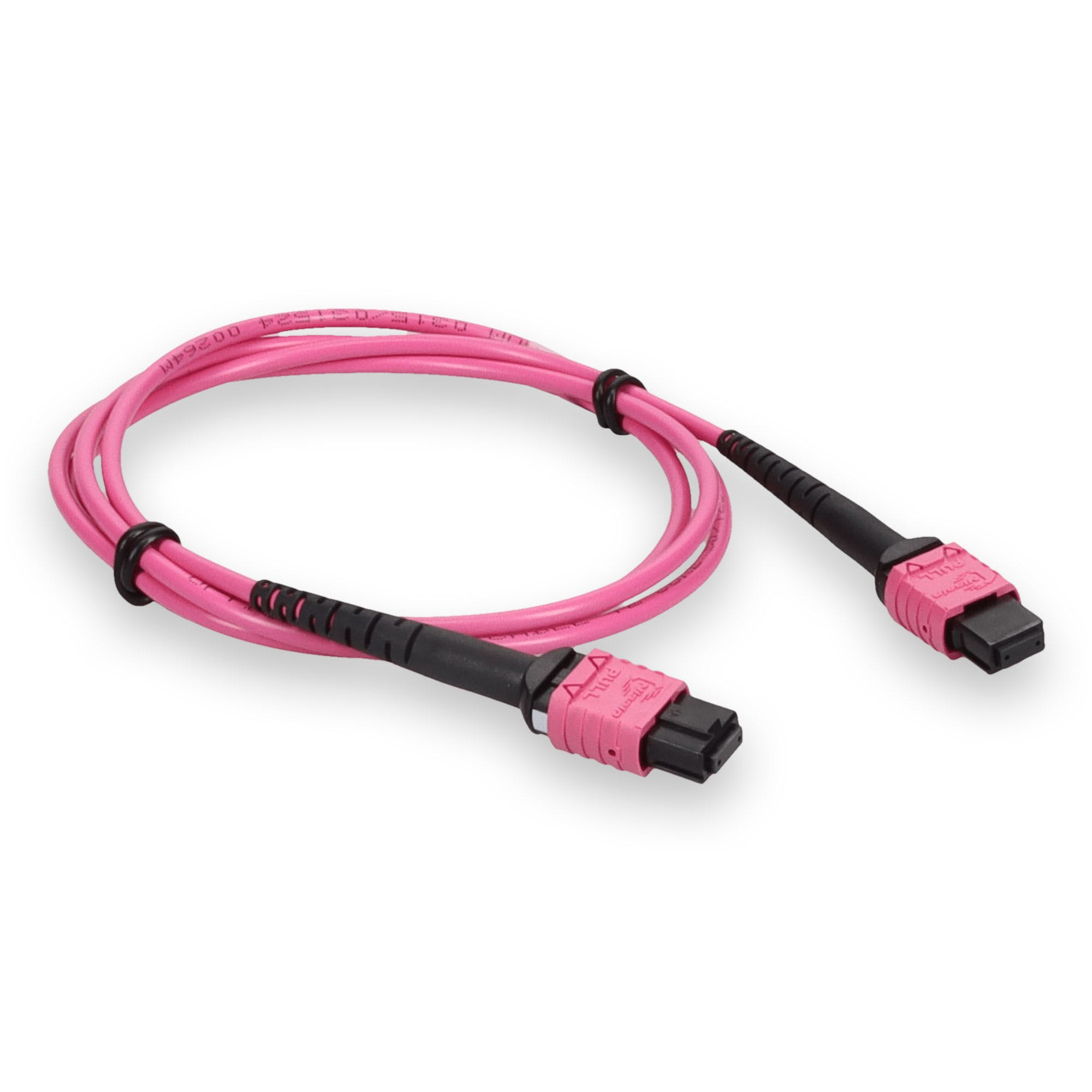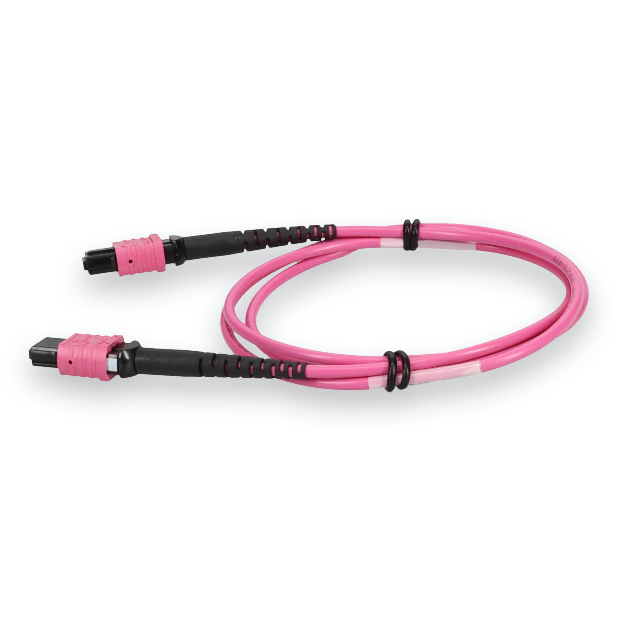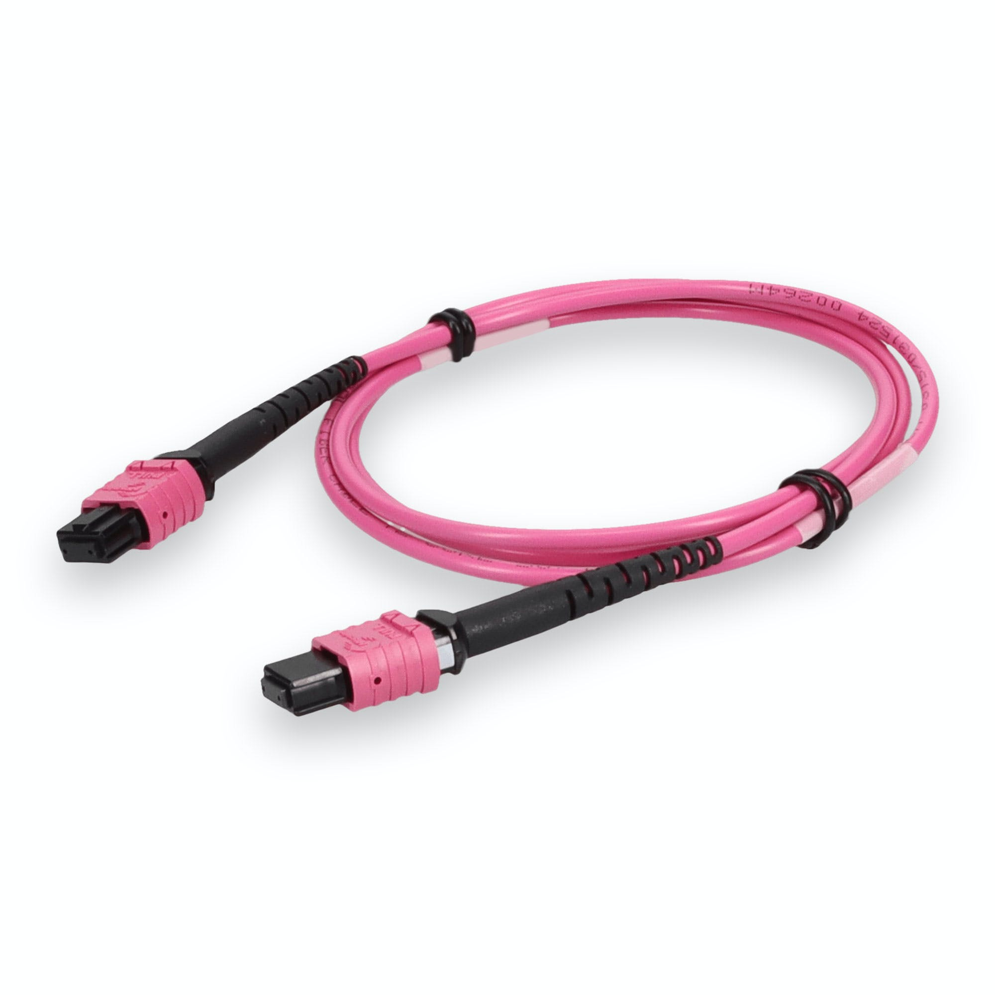 This is a 2m MPO (female) to MPO (female) 12-strand Magenta crossover plenum-rated fiber patch cable. An OM4 cable has a core size of 50m microns that supports 10 Gigabit Ethernet at lengths measuring up to 550 meters, and 100 Gigabit Ethernet measuring up to 150 meters and is reverse compatible with OM3. This optical fiber, nonconductive, plenum (OFNP) cable is best suited for use in interior fiber-optic applications. Our patch cables are 100% compliant for all of your networking needs. Our products are guaranteed by federal law to not affect or void OEM warranties.