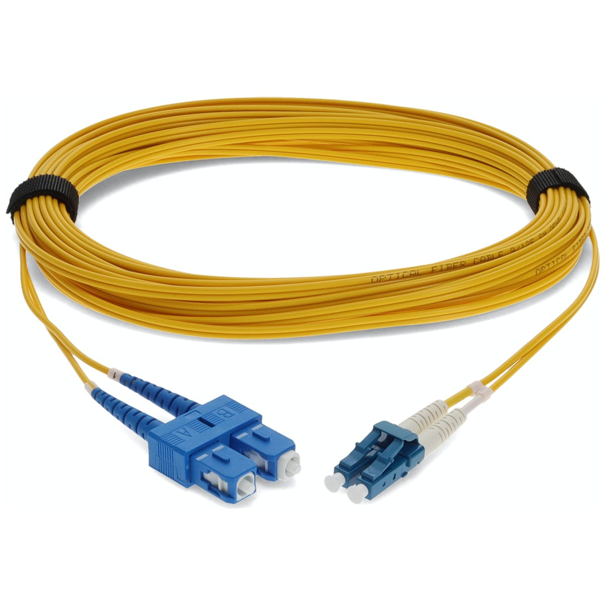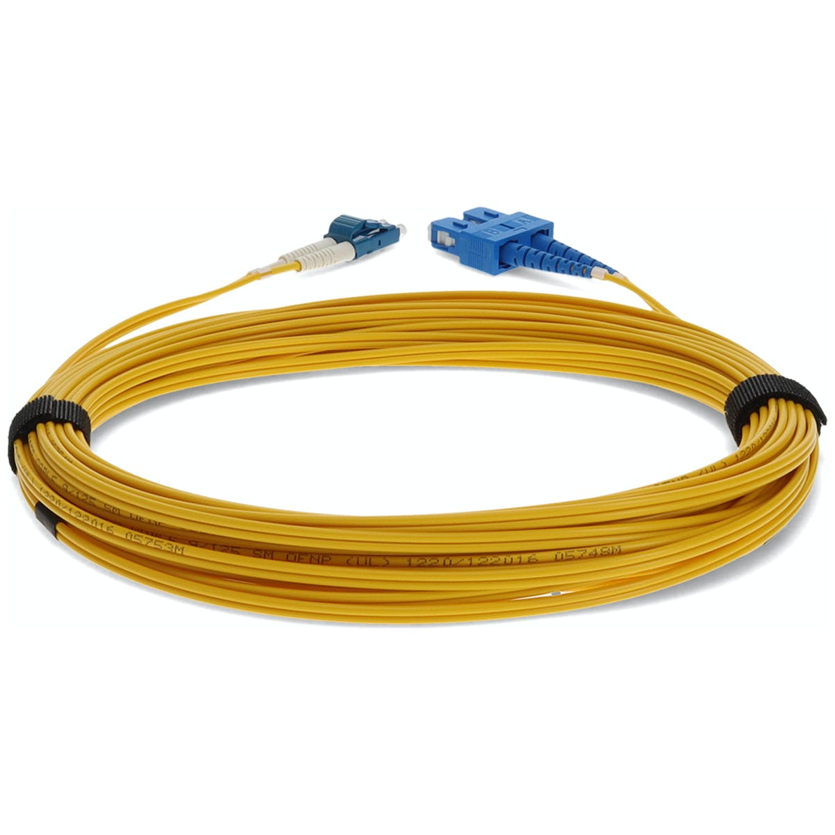 This is a 10.0m LC (male) to SC (male) yellow OS2 duplex OFNP (Plenum-rated) patch straight cable that is used for high speed data transfer. OS2 is a standard single-mode optical fiber commonly used with wavelengths of 1310nm and 1550nm (9/125 microns), and has a maximum attenuation of 1dB/km. The OS2 standard is defined in ISO/IEC 11801. OFNP (Plenum-rated) cables must self-extinguish and prevent re-ignition. Duplex cabling provides two-strands of fiber and is most commonly used in applications that utilize one lane to transmit and one lane to receive. Our patch cables are 100% compliant for all of your networking needs and are guaranteed by federal law to not affect or void OEM warranties.