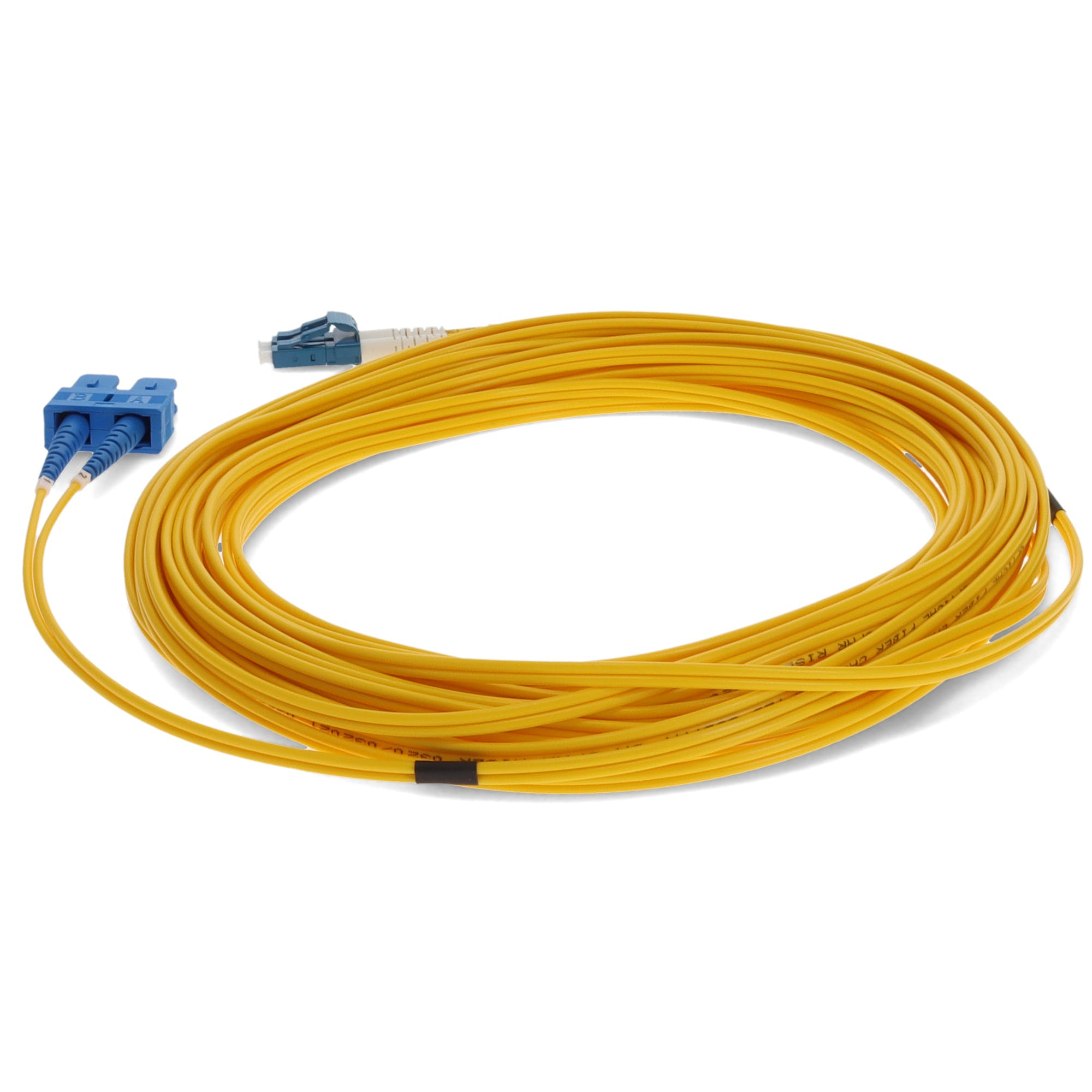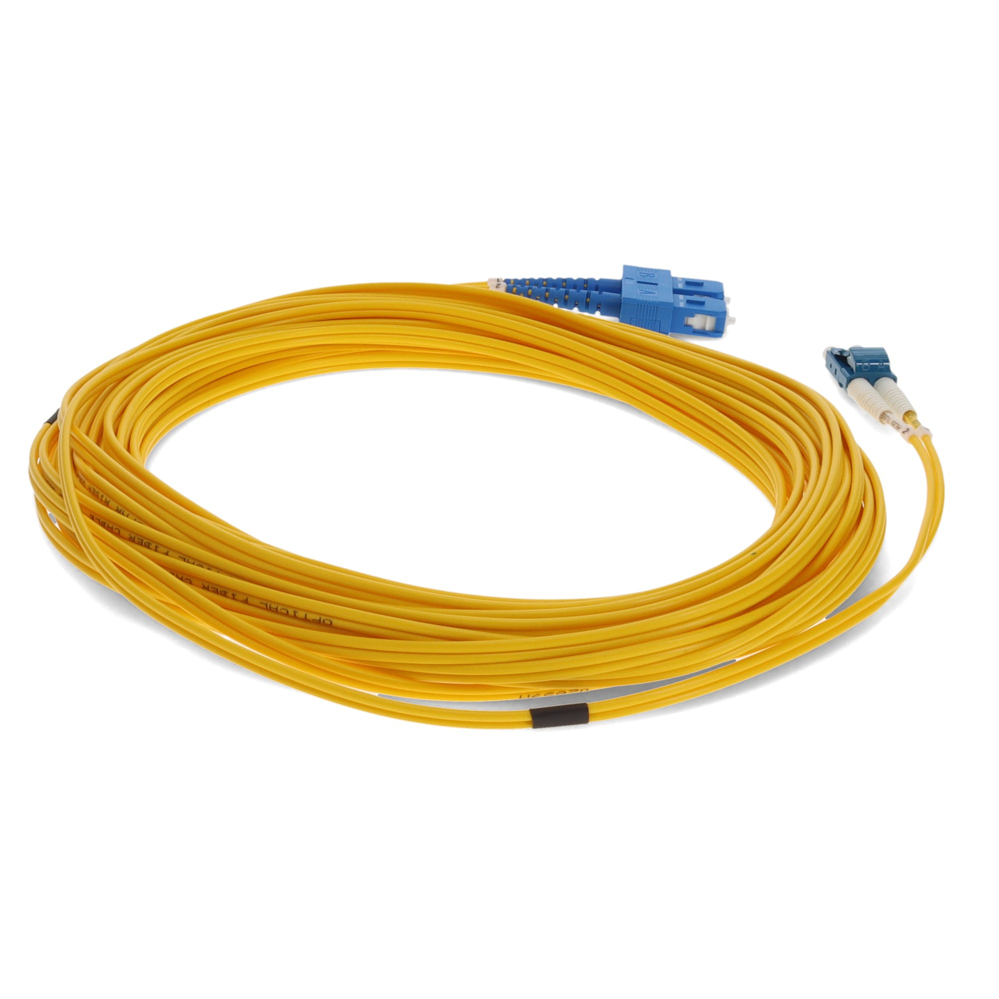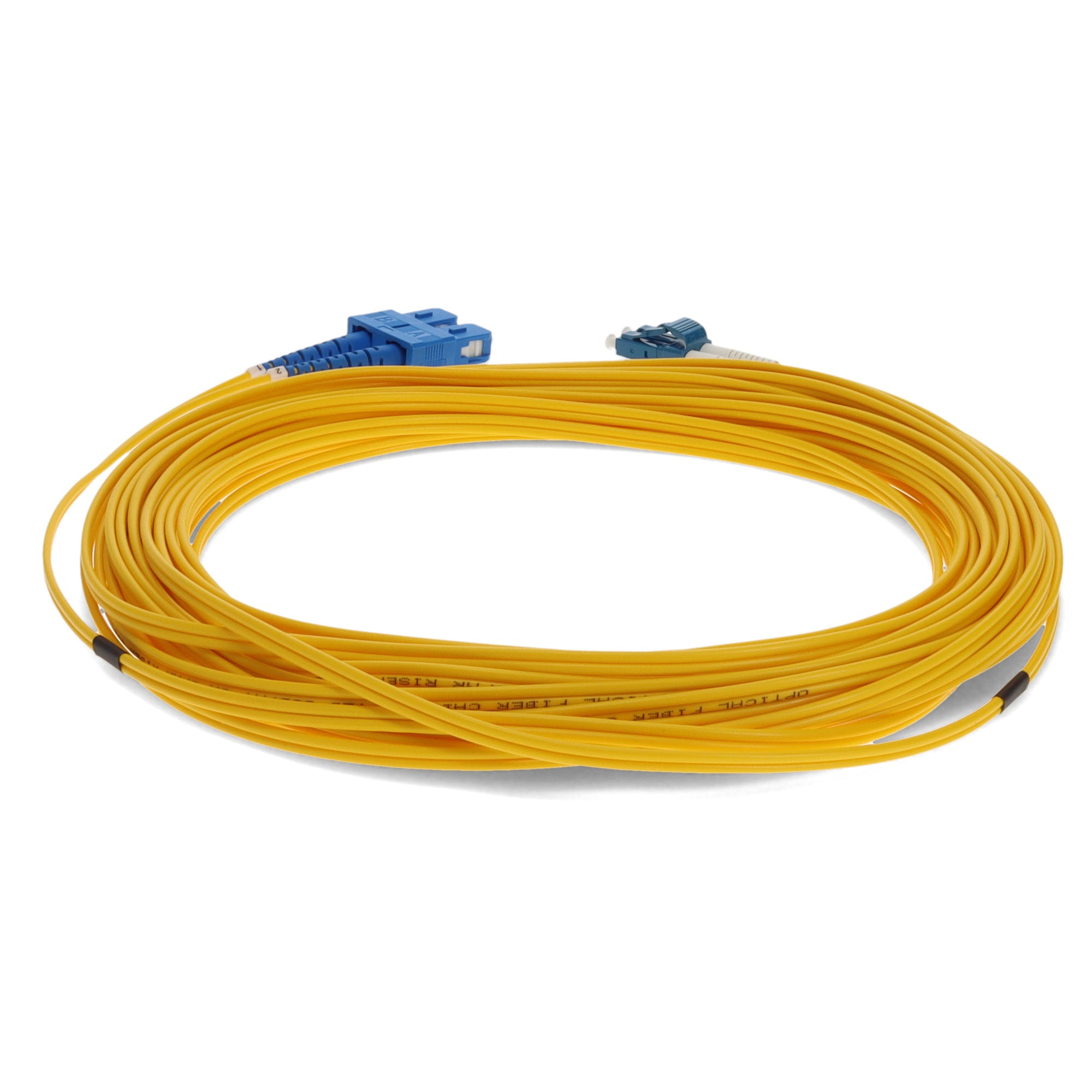 This is a 25m LC (male) to SC (male) yellow duplex riser-rated fiber patch cable. OS2 is a standard single-mode optical fiber commonly used with wavelengths of 1310nm and 1550nm (9/125 microns), and has a maximum attenuation of 1dB/km. The OS2 standard is defined in ISO/IEC 11801. This optical fiber, nonconductive, riser (OFNR) cable is best suited for use in interior fiber-optic applications. A duplex cable is a two-strand fiber optic patch cable that works best with transceivers that both transmit and receive. Our patch cables are 100% compliant for all of your networking needs. Our products are guaranteed by federal law to not affect or void OEM warranties.