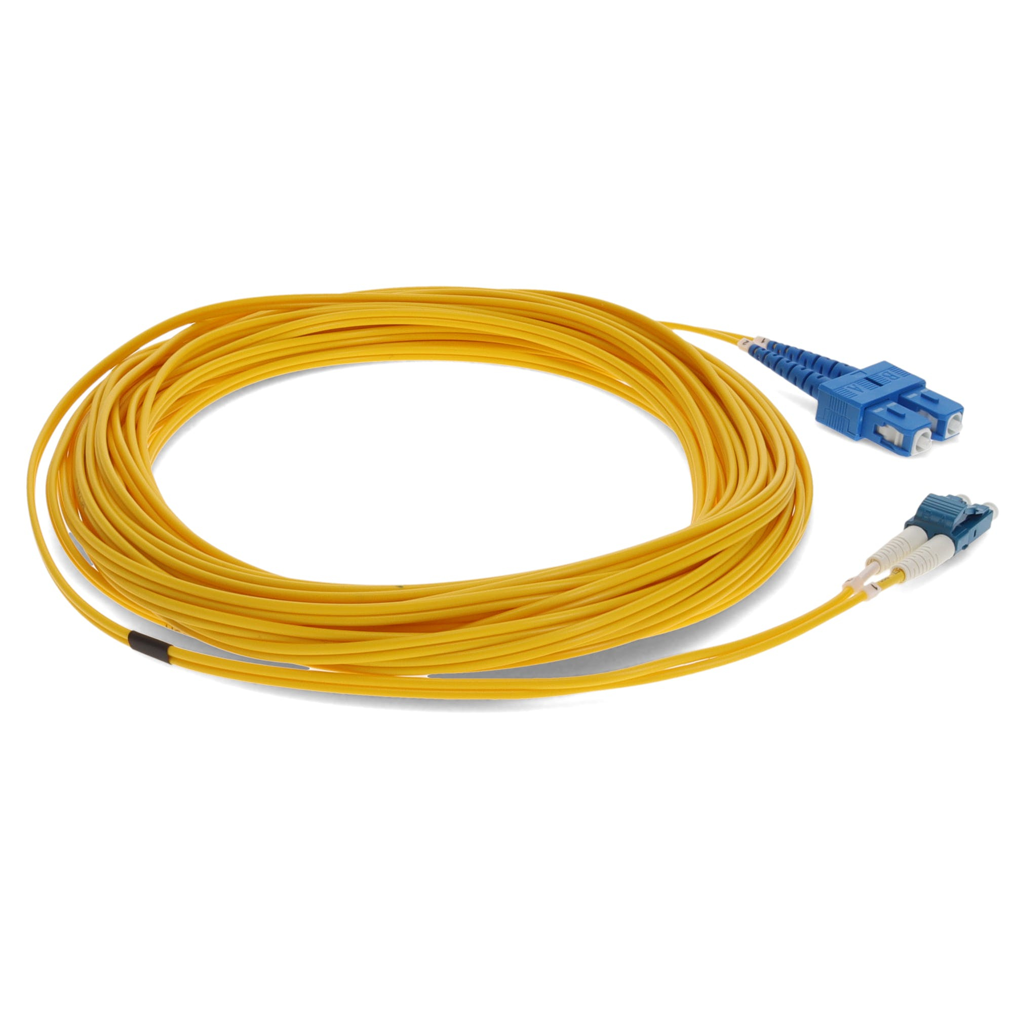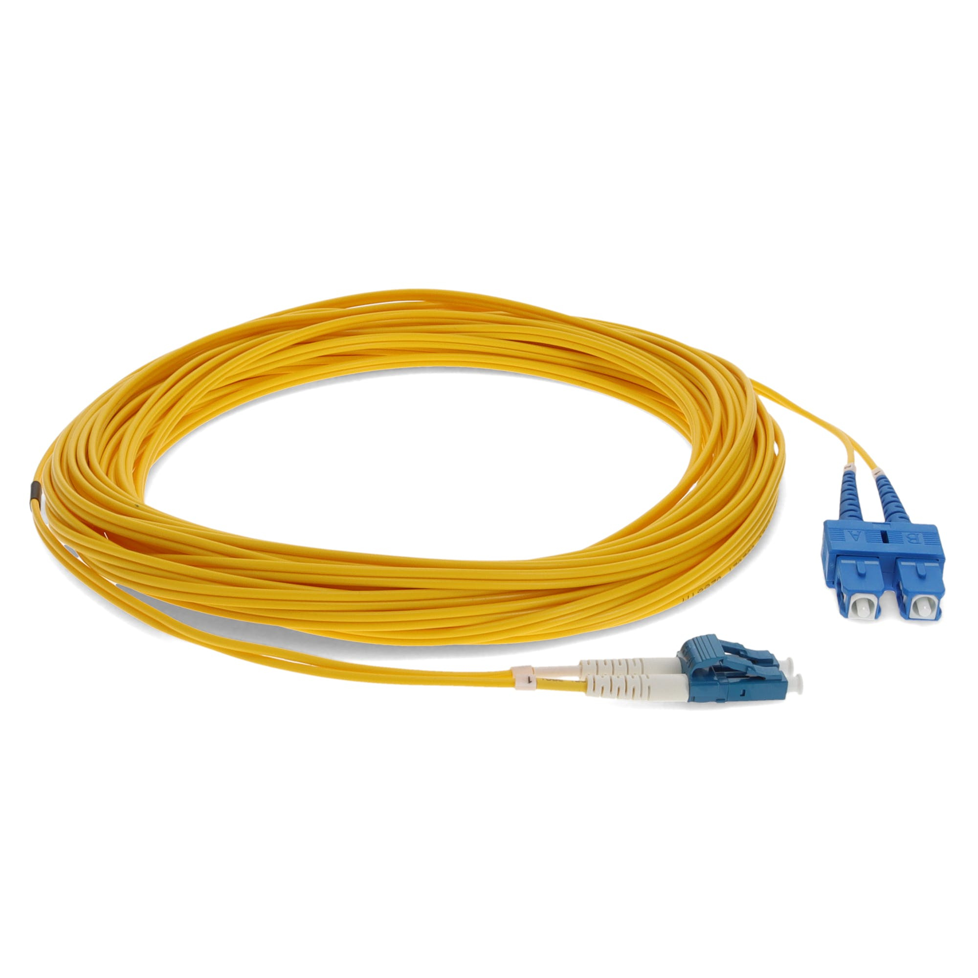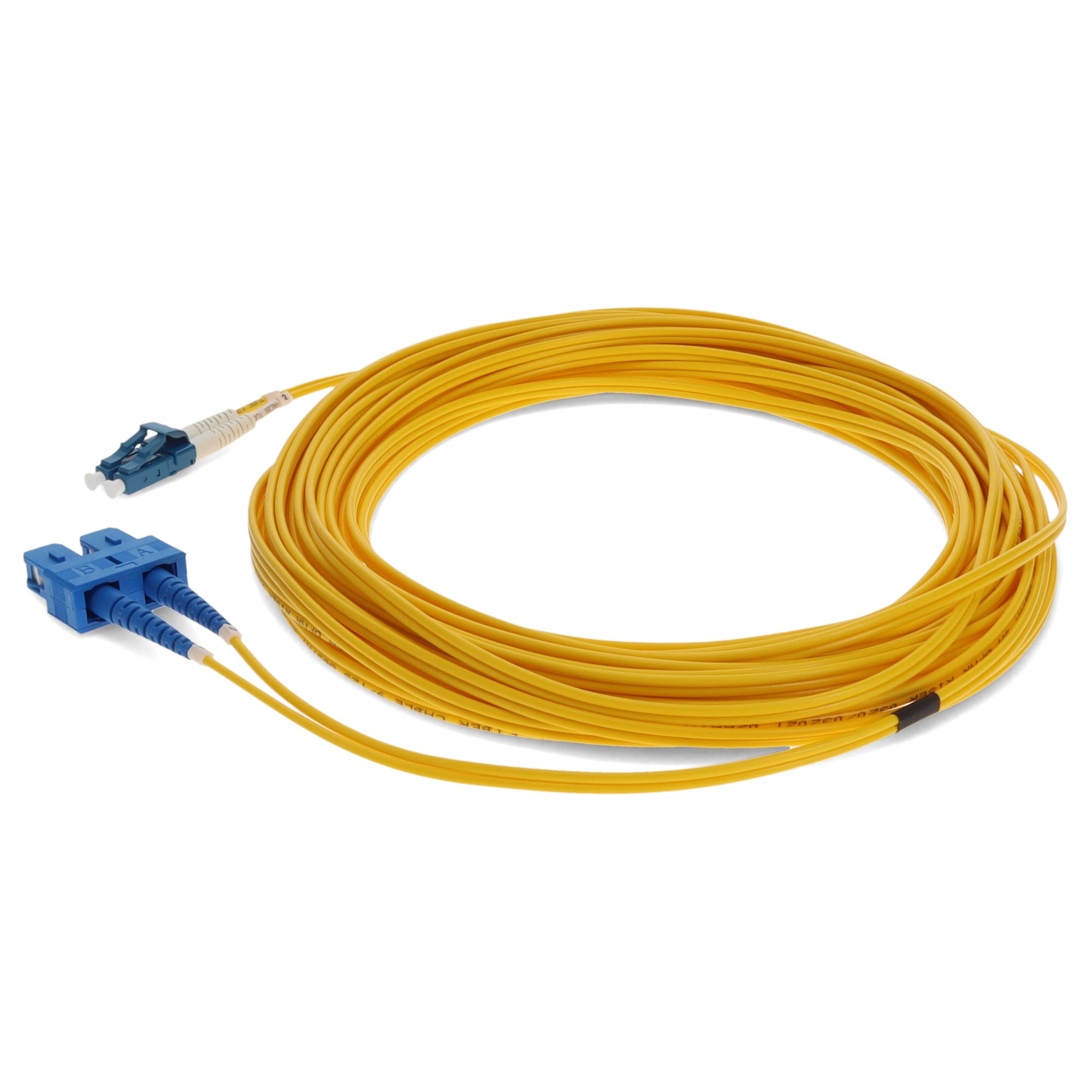 This is a 25m LC (male) to SC (male) yellow duplex riser-rated fiber patch cable. OS2 is a standard single-mode optical fiber commonly used with wavelengths of 1310nm and 1550nm (9/125 microns), and has a maximum attenuation of 1dB/km. The OS2 standard is defined in ISO/IEC 11801. This optical fiber, nonconductive, riser (OFNR) cable is best suited for use in interior fiber-optic applications. A duplex cable is a two-strand fiber optic patch cable that works best with transceivers that both transmit and receive. Our patch cables are 100% compliant for all of your networking needs. Our products are guaranteed by federal law to not affect or void OEM warranties.