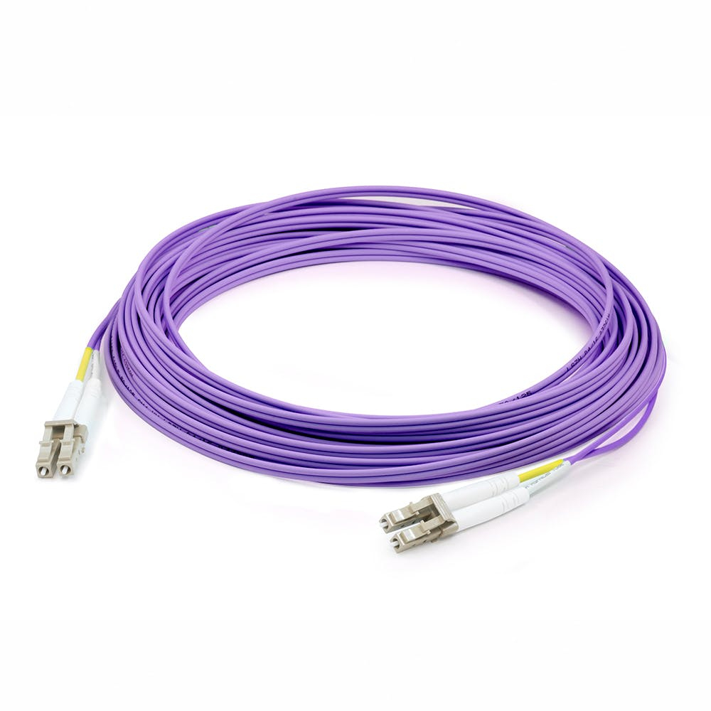 This is a 2.0m (6.6ft) LC (male) to SC (male) purple OS2 Duplex riser-rated patch straight cable that is used for high speed data transfer. OS2 is a standard single-mode optical fiber commonly used with wavelengths of 1310nm and 1550nm (9/125 microns), and has a maximum attenuation of 1dB/km. The OS2 standard is defined in ISO/IEC 11801. This riser (OFNR) cable is best suited for use in interior fiber-optic applications. Duplex cabling provides two-strands of fiber and is most commonly used in applications that utilize one lane to transmit and one lane to receive. Our patch cables are 100% compliant for all of your networking needs and are guaranteed by federal law to not affect or void OEM warranties.