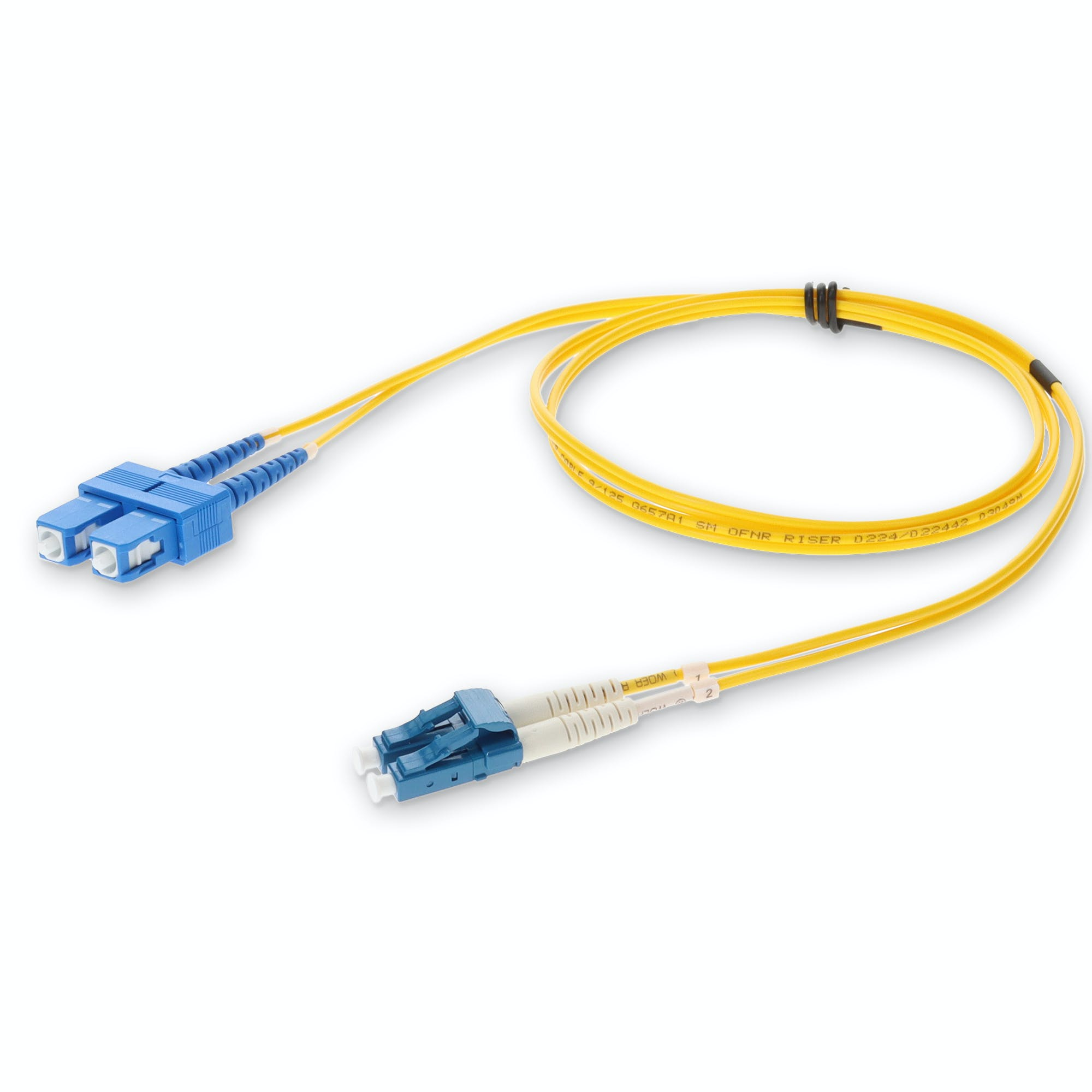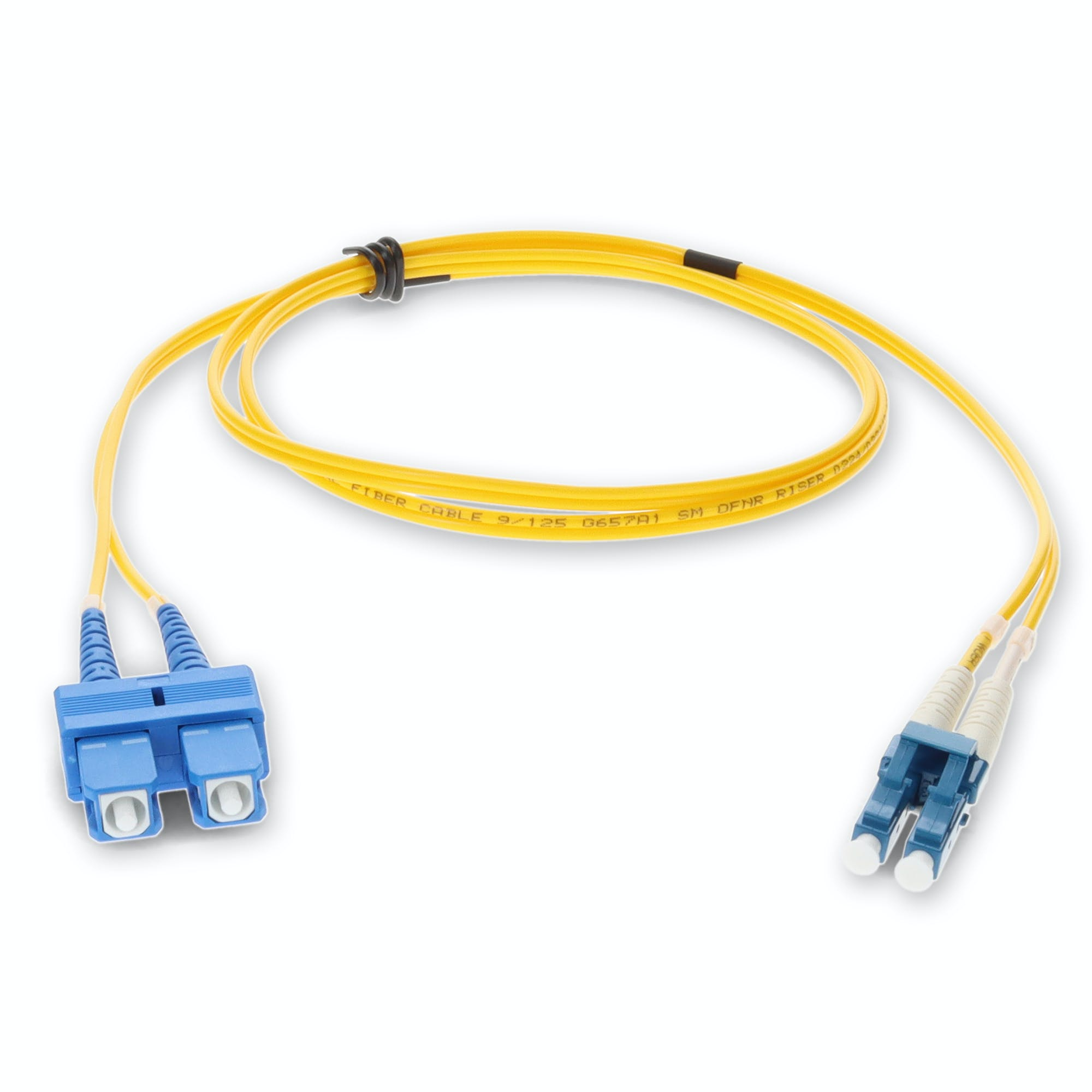 This is a 9m LC (male) to SC (male) yellow duplex riser-rated fiber patch cable. OS2 is a standard single-mode optical fiber commonly used with wavelengths of 1310nm and 1550nm (9/125 microns), and has a maximum attenuation of 1dB/km. The OS2 standard is defined in ISO/IEC 11801. This optical fiber, nonconductive, riser (OFNR) cable is best suited for use in interior fiber-optic applications. A duplex cable is a two-strand fiber optic patch cable that works best with transceivers that both transmit and receive. Our patch cables are 100% compliant for all of your networking needs. Our products are guaranteed by federal law to not affect or void OEM warranties.