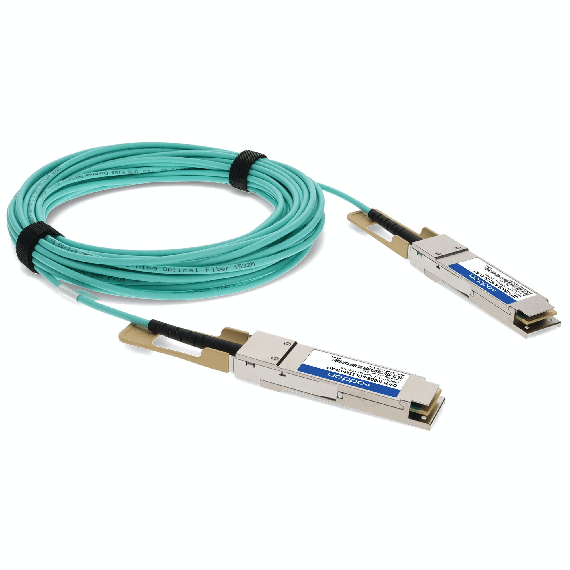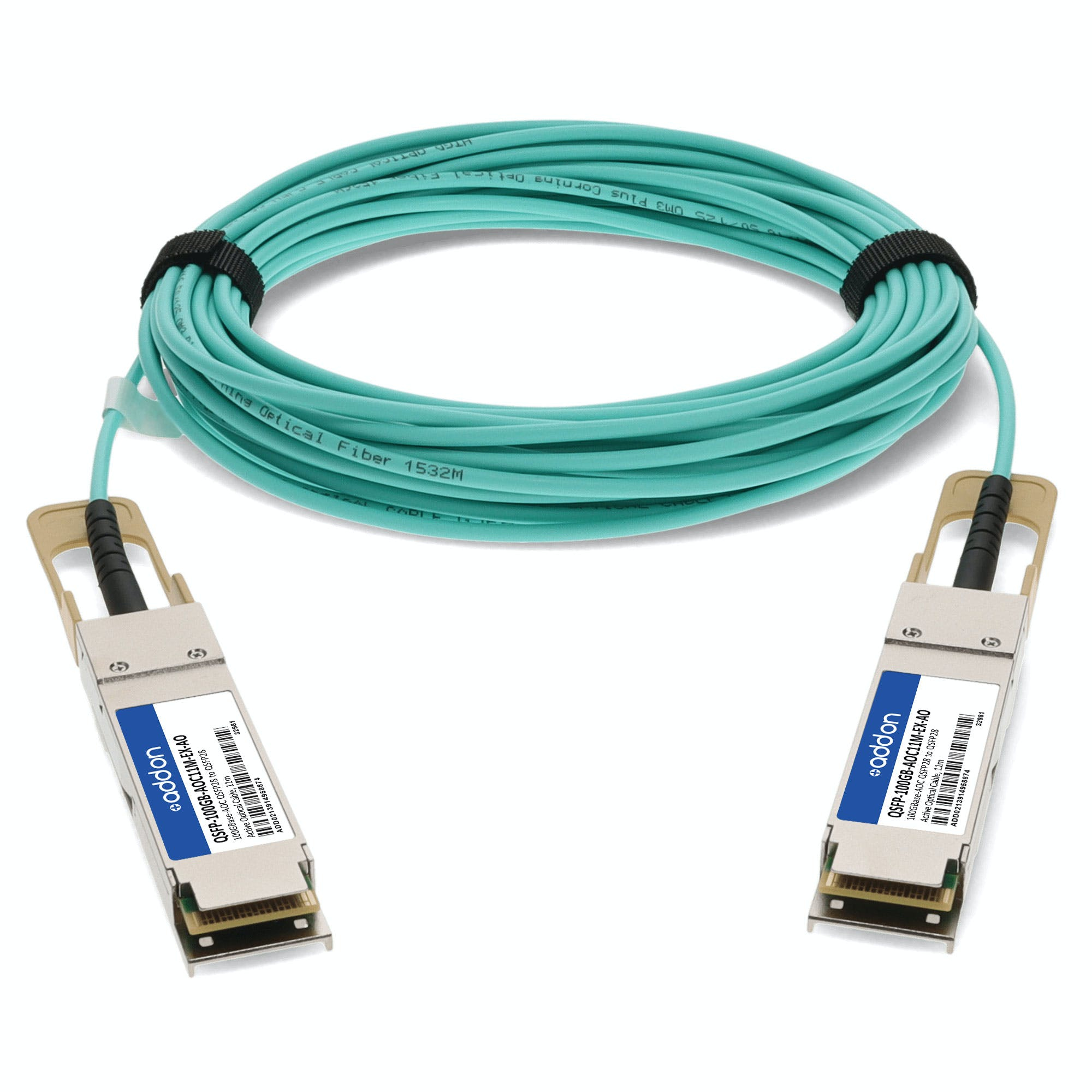 This is an Extreme Networks® compatible 100GBase-AOC QSFP28 to QSFP28 active optical cable that operates over multi-mode fiber with a maximum reach of 12.0m (39.4ft). At a wavelength of 850nm, it has been programmed, uniquely serialized, and data-traffic and application tested to ensure it is 100% compliant and functional. This active optical cable is TAA (Trade Agreements Act) compliant, and is built to comply with MSA (Multi-Source Agreement) standards. We stand behind the quality of our products and proudly offer a limited lifetime warranty.