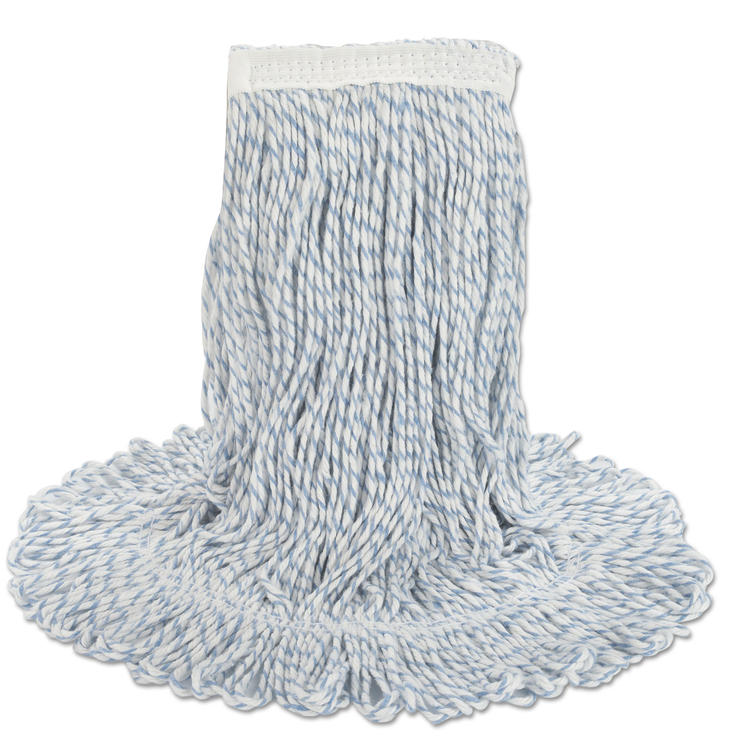 This mop head is made from a high-grade, four-ply, rayon-blend which is designed to help you lay finish more evenly. Looped ends minimize unraveling and linting. Constructed to be more durable with a double-sewn tailband and polyester-tape headband. The mop heads are mildew and bacteria resistant. Designed for use with clamp and grip-style mop handles (sold separately).