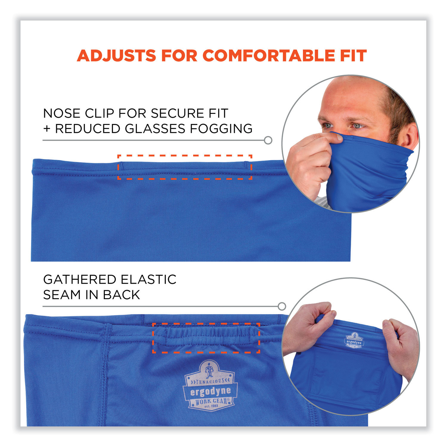 The Chill-Its 6483 Cooling Neck Gaiter with Pocket protects workers from sun, dust and debris while also providing cool relief on hot days. When wet, the evaporative cooling technology will instantly activate for hours of cooling. When dry, the material will absorb sweat and wick moisture. For advanced cooling along the neck, this neck gaiter features a reinforced back pocket designed to hold ice or phase change packs (not included). It is rated to UPF 50+ for protection against the sun's harmful UV rays, and also features a reflective accent for enhanced visibility. With a bandana cut, this gaiter is longer in the front than back. When pulled up for wear as a face covering, the adjustable nose clip along the top makes for a comfortable and secure fit while also reducing eyewear fogging. A gathered elastic seam along the back reduces the gap between the neck and gaiter for a snug, comfortable fit. Apparel Type: Neck Gaiter; Material(s): Polyester; Spandex; Color(s): Blue; Color Family: Blue.