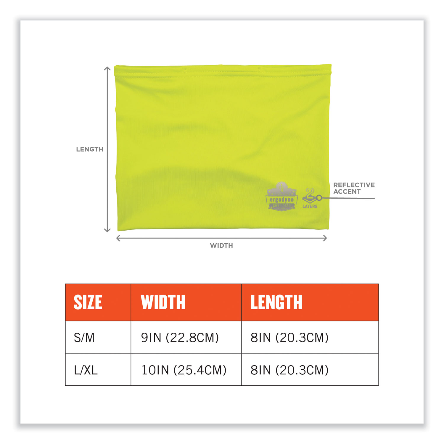 The Chill-Its 6489 2-Layer Cooling Multi-Band meets CDC and WHO recommendations for multiple layers of protection while also shielding the face and neck from sun, dust and flying debris. When worn as a face covering, a nose clip along the top makes for a comfortable and secure fit while also reducing eyewear fogging. Evaporative technology can be easily activated with water for immediate cooling relief. This neck tube is rated to UPF 50+ for protection against the sun's harmful UV rays and features an anti-odor treatment for fresh all-day wear. A reflective accent enhances visibility in low-light conditions. Ideal for anyone requiring two layers of face protection, particularly those who are working or spending excess time in the heat. Simply wet the cooling headwear to activate instant cooling relief that lasts for hours. When activated, this multi-band is lightweight and refreshing for even the hottest days of the year. Machine wash and hang dry as needed. Apparel Type: Multi-Band; Material(s): Polyester; Spandex; Color(s): Hi-Vis Lime; Color Family: Green.