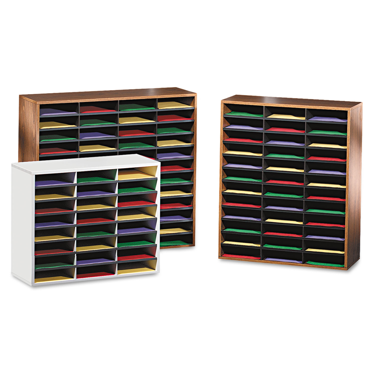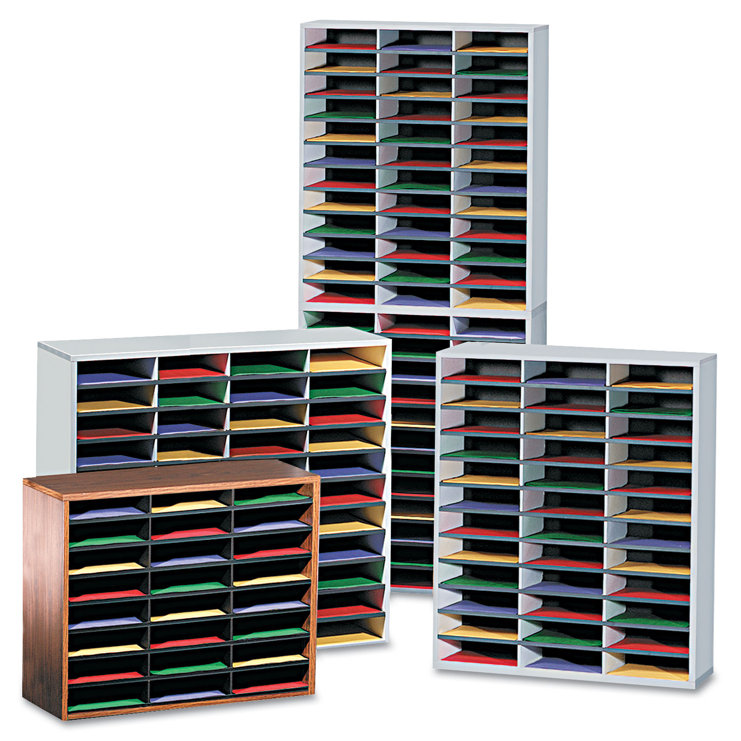 Keep sales literature, mail and forms organized. Corrugated divider system with high-strength frame. Fast, easy assembly. Includes plastic finishing channels and self-adhesive labels.