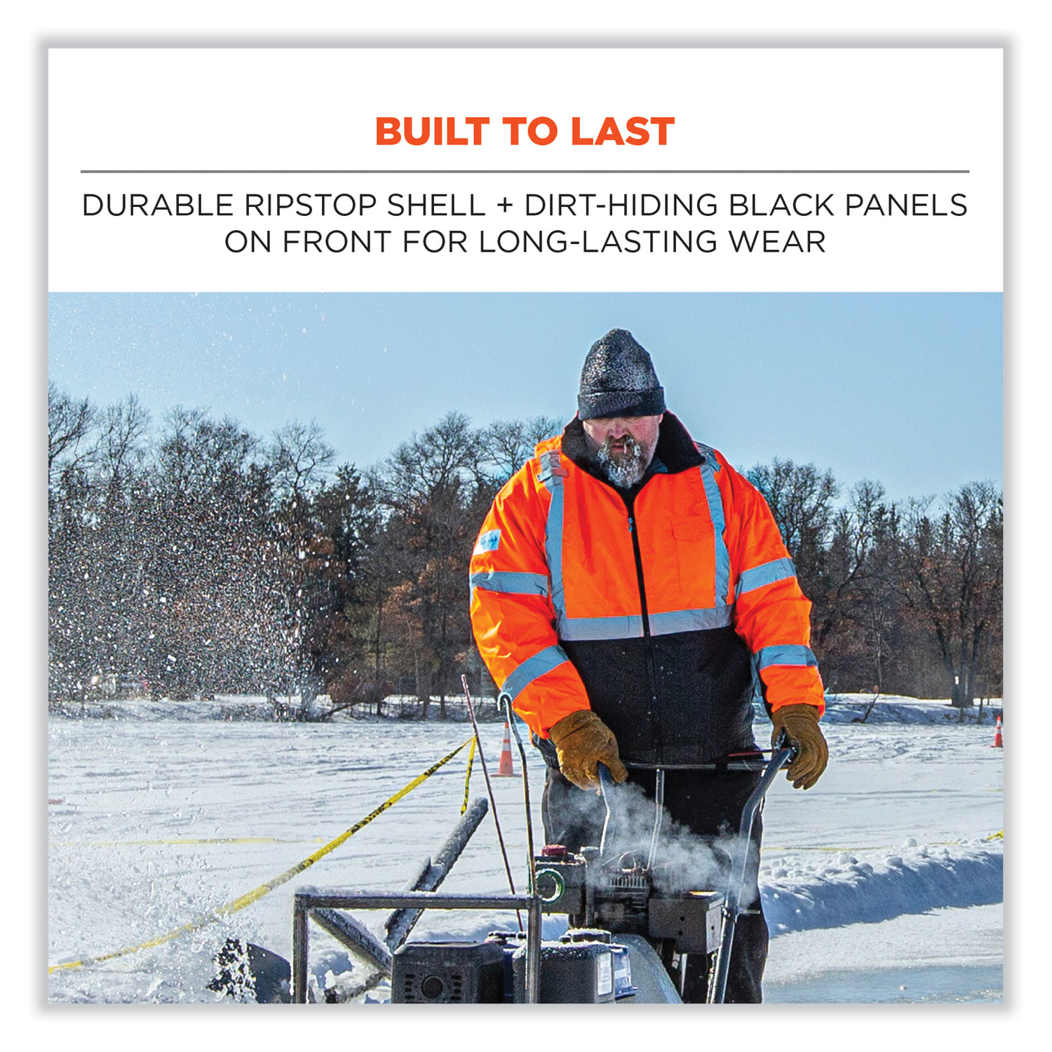 The GloWear 8381 is a Type R Class 3, 4-in-1 Hi-Vis Jacket that can be worn multiple ways for ultimate adaptability in changing weather. Zip out the liner to wear it alone as a lightweight fleece jacket, zip off liner sleeves for wear as a vest, wear the shell on its own as a lightweight weatherproof layer or leave the liner zipped in to wear as a warm winter work jacket. Ultra-warm 280 g fleece traps heat for warmth in extreme cold, while a weatherproof 300D performance polyester shell with PU coating resists water and wind without compromising comfort or breathability. Built for long-lasting durability, this hi-vis jacket features a ripstop shell and dirt-hiding black panels. Compliant to ANSI/ISEA 107, Type R Class 3 with 2" reflective tape for enhanced low-light visibility. Apparel Type: Hi-Vis Jacket; Material(s): Polyester; Color(s): Lime; Color Family: Green.
