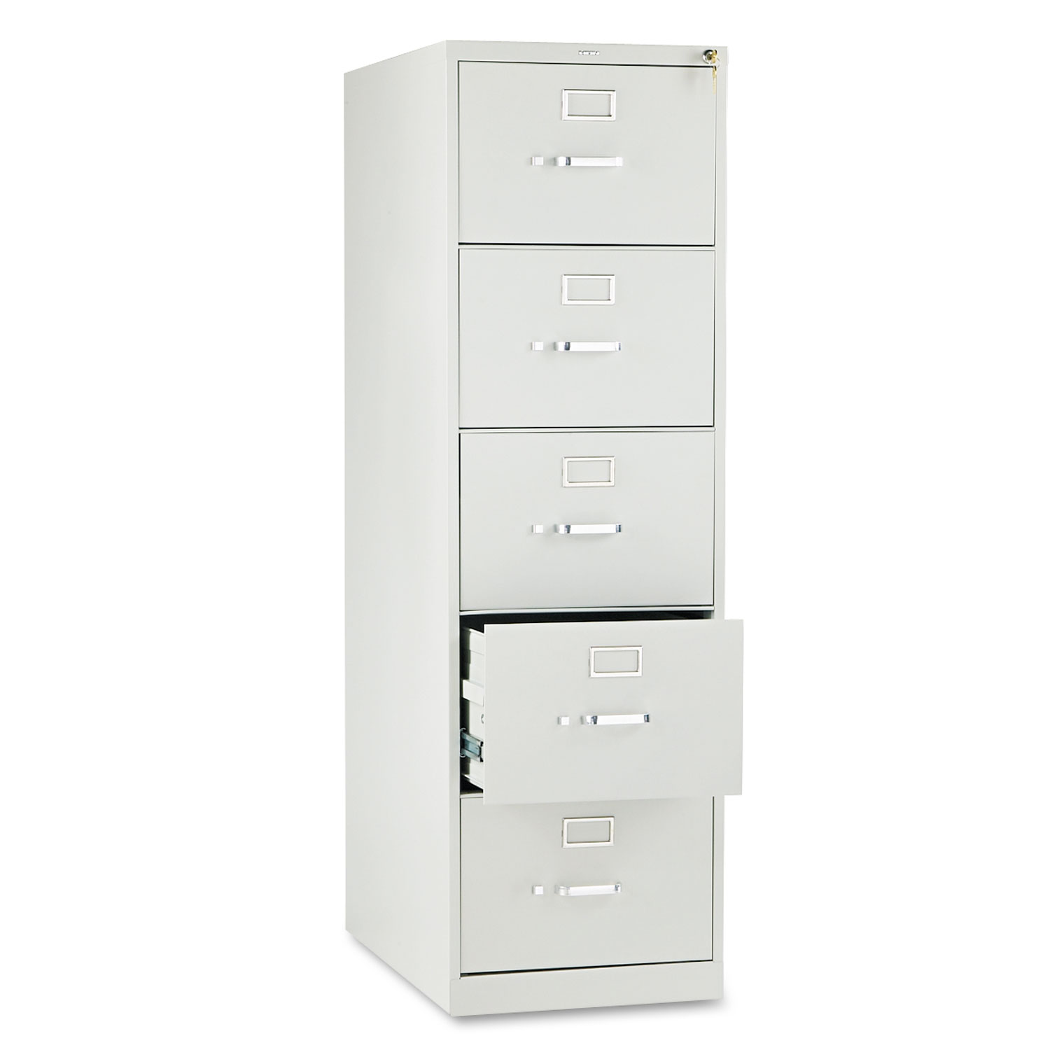Extra-deep files for maximum storage space. Steel ball bearing suspension. High drawer sides accommodate hanging file folders, eliminating the need for hangrails. Spring-loaded follower block in each drawer keeps files upright and neat. Label holders for quick and easy identification of contents. HON® "One Key" core removable locks.