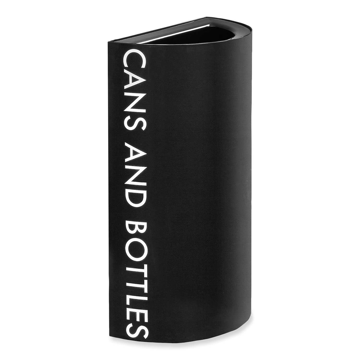 Configurable and customizable recycling system. Half-Round bases can be arranged in a variety of ways to suit any space. Sturdy steel construction with a powder-coated finish for added durability. Comes with Half-Round lid. Retainer ring in base holds bag in place. Waste Receptacle Type: Indoor Recycling Bin; Material(s): Steel; Application: Indoor Recycling; Capacity (Volume): 23 gal.