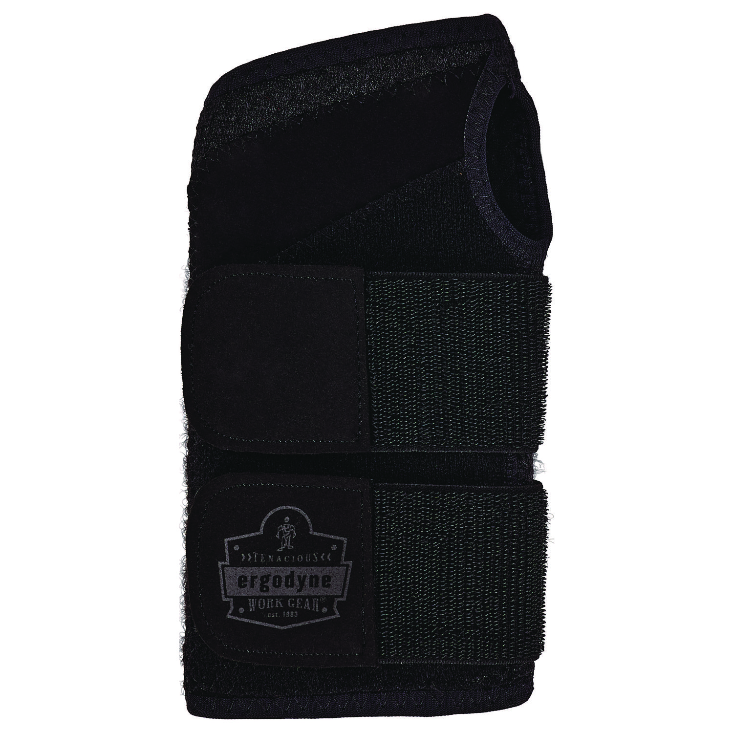 The ProFlex 4015 Wrist Brace Support with open center stay insert provides stable support to relieve wrist pain on and off the worksite. The semi-rigid plastic insert is positioned on the palm of users' hands, alleviating pressure on wrist nerves and enabling increased freedom of movement. Dual tightening straps with hook-and-loop closures increase levels of compression in key areas and allow the brace to stay in place. Crafted with a contoured woven nylon-polyester-spandex material, this wrist wrap is designed for long-lasting, comfortable wear. An open design on the top allows fingers and thumb to have full range of motion when in use. This wrist wrap support is crafted to provide gentle stability for individuals, including workers, athletes or anyone experiencing minor sprains, strains or discomfort from repetitive motions, especially when lifting heavy materials. Size Group: Large; For Use With: Left Hand; Material(s): Nylon; Polyester; Spandex; Color(s): Black.