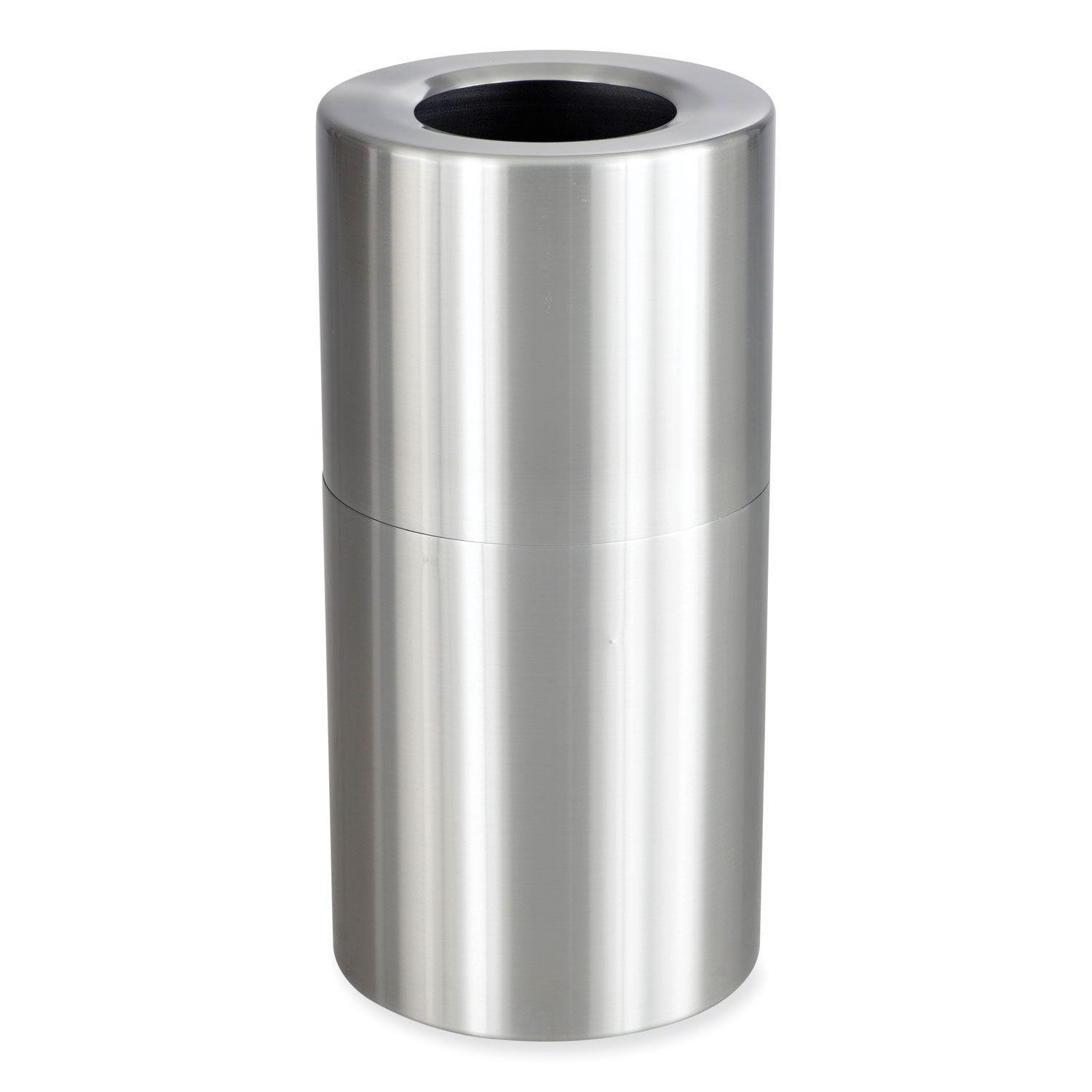 This classic Single Recycling Receptacle features a 20-gal capacity and is designed with aluminum for long-lasting durability and a sleek aesthetic that looks great in a variety of spaces. This receptacle has an easily removable lid for ease of use when removing recyclables or waste. Ideally suited for indoor use, this receptacle has ample capacity and a clean look that makes it great for use in high-traffic areas such as breakrooms, cafeterias, conference rooms, open office spaces, lobbies, entrances or exits. Waste Receptacle Type: Indoor All-Purpose Recycling Bin; Material(s): Steel; Application: Indoor All-Purpose Recycling; Capacity (Volume): 20 gal.
