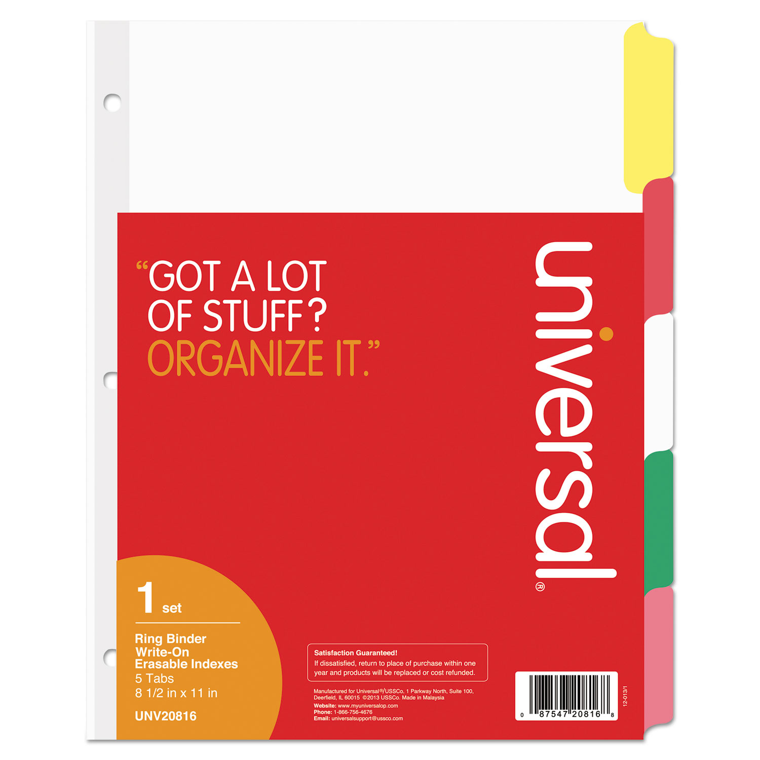 Universal® Deluxe Write-On/Erasable Tab Index