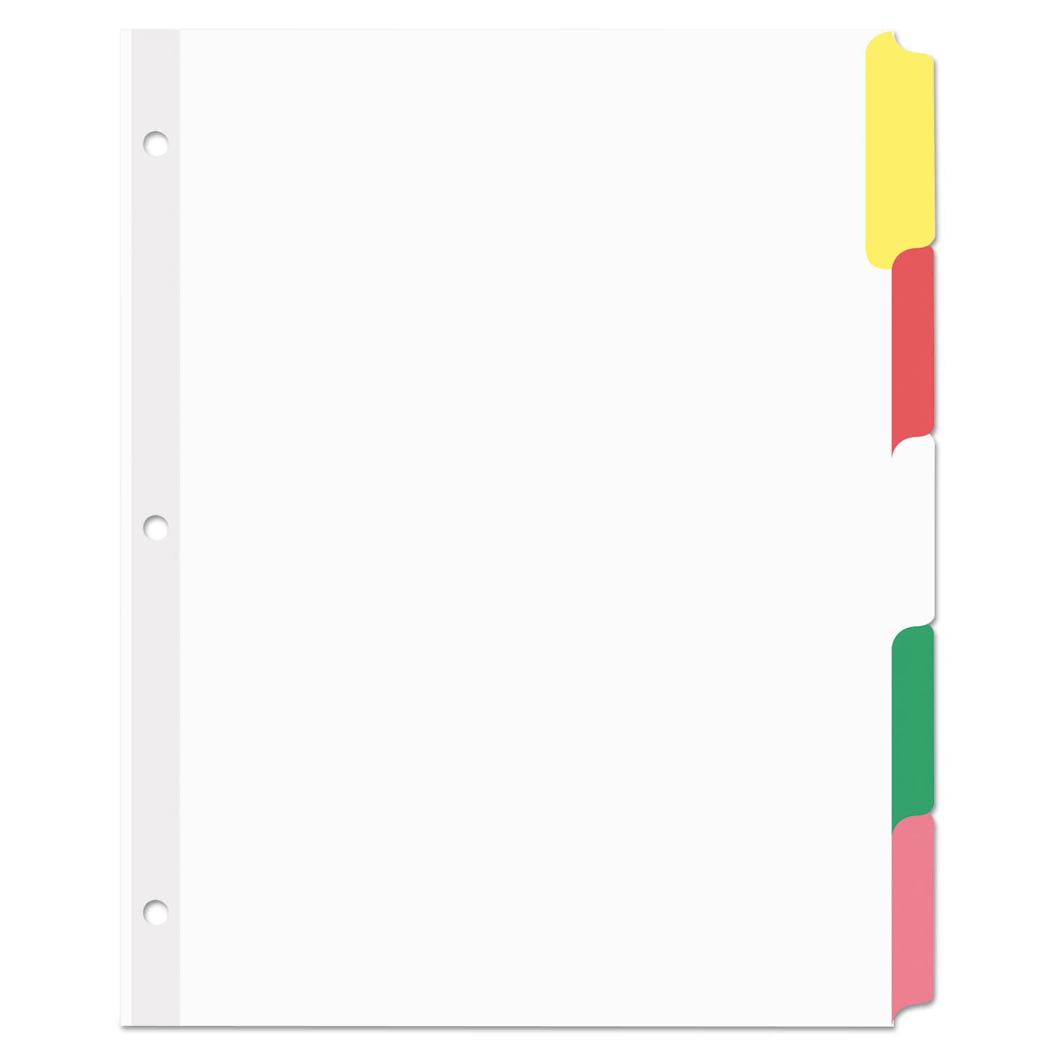 Keep larger binder files organized with a three-hole punched, paper tabs with write-on and erasable tabs. Sort, collate, and index anything with these versatile and reusable tab dividers. Organize large files, notes, chapters, and sections within larger binder files. Write directly on coated tabs with nonpermanent ink and erase with standard eraser to reuse again and again. Holes for binder rings are reinforced with clear plastic to prevent tearing. Three-hole punched for use in standard ring binders.